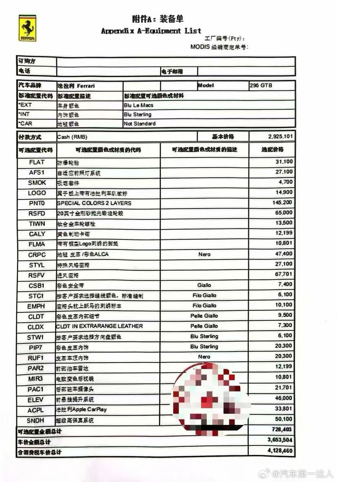 稀有配色,勒芒蓝,法拉利296 GTB,选配72.8万,升级碳纤维前唇➕侧裙