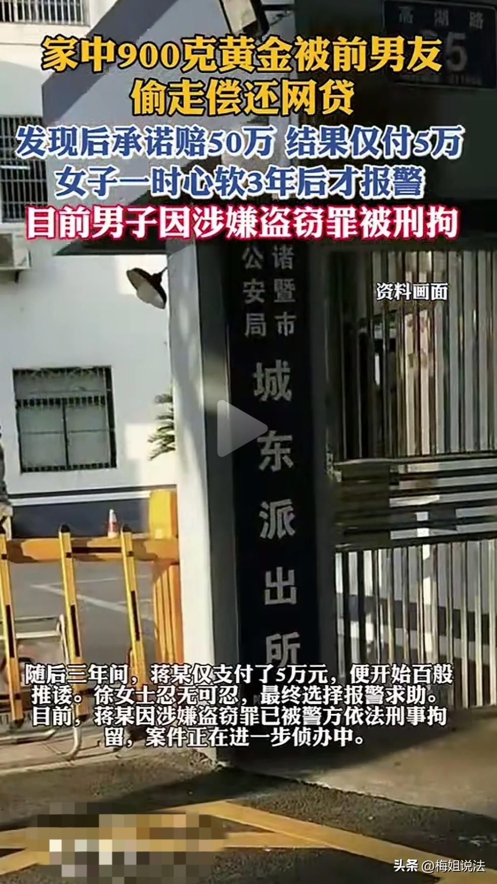太坏了!浙江诸暨,男子偷走前女友900克黄金,哀求其不要报警并欺骗她3年内归还50万。3年后,男子不仅不还钱,还嚣张地表示事情已经过去三年了,报警也没用!前女友终于看清男子的真实嘴脸,报警求助。那么女子的黄金还能要回来吗?男子会逍遥法外吗?最后结局大快人心! 你到底什么时候还偷金子的钱?这都3年了,还不还吗?又一次拨通电话的徐女士,气急败坏的吼道。 急什么?又不是不还,我不是还了5万了吗?再说了,事情都过去3年了,早没人管你的事儿了,有本事你去报警啊。接电话的是徐女士的前男友蒋某,他一副小人得志的样子。 类似的场景,经常在徐女士的生活中发生,她已经记不清楚给这个前男友打了多少催债电话。但,他总是一副很无赖的样子,好像吃准徐女士拿他没有办法。 这怎么又是前男友,又是偷金子,又是报警呢?信息量有点大啊,到底怎么回事呢? 具体的事情,还得倒回3年前说起。 2022年,徐女士与前男友蒋某相遇了,两人很快看对眼,发展成了恋人。 2023年,由于性格不合等原因,两人又分手了。 但是分手以后,徐女士很快发现她藏在家里的900g金子不见了。 她思来想去,觉得就是蒋某给偷走了。因为她家里藏金子的地点,以及家里藏金子这件事情从来没跟别人说过,只偷偷告诉过蒋某。 她气急败坏的冲到前男友蒋某的家中,质问蒋某,是不是把她家里900金子全偷了? 蒋某倒是敢作敢当,一口承认了,一点没有狡辩的意思。 姜某跟徐女士谈恋爱的这一年,他太了解徐女士了,早就把徐女士的脾气、性格摸透了。 看着生气的徐女士,他马上服软,跟徐女士装可怜。 他表示自己也不想拿徐女士的这些金子,但是他被网贷逼的没有办法了,实在是走投无路了,才想先用用徐女士的这些金子应应急。 还口口声声的跟徐女士保证,自己三年内连本带利的还给徐女士50万,少一分都不行。 并且苦苦哀求徐女士,千万不要报警,报警的话他就完了。看在他俩相识一场的份上,求徐女士帮他这一回。 在蒋某的这一通表演下,徐女士一时心软就同意了。 但让徐女士没想到的是,就是因为自己一时的心软,让她后面整整三年,都没安生日子过。 刚开始,蒋某还钱很积极,根本不用徐女士催,他就会积极自动的还给徐女士一部分钱。 看着前男友的良好表现,徐女士很欣慰。她开始还有点担心,蒋某不还钱呢。现在看来,她把人想的太坏了,自己这个前男友还是挺信守承诺呢。 不过,徐女士还是高兴的太早了。 她这个前男友,陆陆续续还了五万块钱以后,就再也不还了。 徐女士本身的性子有些软,她一开始还不好意思张嘴跟蒋某要。 但是眼看蒋某这边一点动静没有,她不能让自己辛辛苦苦攒的黄金就这样打水漂。 做了好久的心理建设,她才开始张嘴跟蒋某要钱。 但是让她没想到的是,姜某就像个地皮无赖一样,各种敷衍徐女士,就是不还钱。 气急败坏的徐女士开始对蒋某展开电话轰炸,逼迫蒋某还钱。 蒋某不为所动,他觉得事情已经过去3年了,你还能拿我怎么办? 于是就出现了开头他俩打电话争吵的那一幕。 忍无可忍的徐女士,在此刻终于看清楚蒋某的真实嘴脸,不再顾念旧情,打电话报警了。 那么徐女士还能要回她的黄金吗?毕竟事情已经过去3年了。 当然可以! 法律明确规定,盗窃罪数额超过1000块钱的,它的法定追诉期可以到5年。 虽然,蒋某和徐女士属于比较亲密的男女朋友关系。但是,作为她的男朋友,仍然不能私自拿走蒋女士的财务。 《刑法》第264条明确规定,盗窃公私财物,数额较大的,或者多次盗窃、入户盗窃、携带凶器盗窃、扒窃的,处三年以下有期徒刑、拘役或者管制,并处或者单处罚金;数额巨大或者有其他严重情节的,处三年以上十年以下有期徒刑,并处罚金。 最后,结合相关法律条款,蒋某被依法刑拘。 蒋某聪明反被聪明误,他绞尽脑汁的套路徐女士,利用徐女士善良、心软的特点,想要拿捏蒋女士。 还妄想钻法律的空子,觉得3年后这个钱就不用还了,真是痴心妄想!