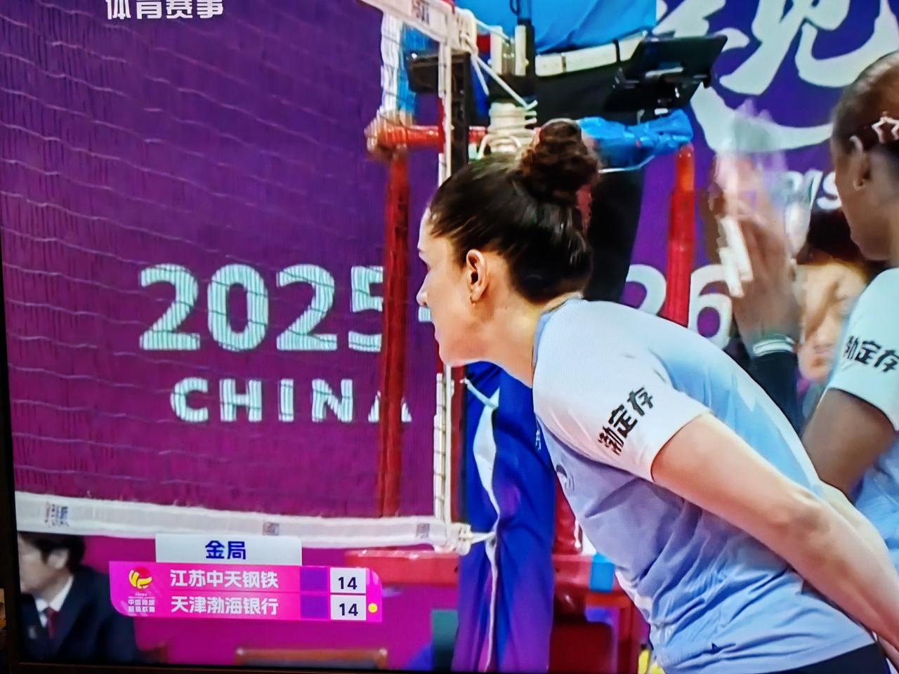 女排排超联赛半决赛第二场,江苏女排25:10,25:22,25:13,大比分3:0战胜天津女排,金局比赛开始,唐欣发球,吴梦洁扣球得分2:0,娜塔莉娅扣球得分2:1,张世琦发球,吴梦洁扣球得分3:1,杨佳发球,娜塔莉娅扣球被拦4:1,天津女排叫暂停了。杨佳发球,杨艺一传出现波动探头,万梓月打探头得分5:1,杨佳发球,马丁快球出界6:1,天津女排提出挑战打手失败。杨佳发球,刘美君二号位扣球被拦7:1,吴梦洁拦住刘美君。马丁调球,娜塔莉娅扣球得分7:2,刘美君发球,吴梦洁扣球得分8:2,吴梦洁进攻太强了,周页彤发球失误8:3,娜塔莉娅发球,吴梦洁扣球得分9:3,吴梦洁发球,马丁背飞得分9:4,马丁发球,唐欣吊球得分10:4,天津女排防守太靠后,范泊宁上场发球得分11:4,天津女排叫了第二次暂停。范泊宁发球,王艺竹扣球得分11:5,孟豆发球,唐欣扣球出界11:6,孟豆发球,杨佳快球出界11:7,江苏女排叫暂停了。孟豆发球,唐欣自接自扣得分12:7,张籽萱发球,刘美君扣球得分12:8,王艺竹发球,唐欣扣球被拦12:9,吴梦洁在后排,唐欣被追发,唐欣扣球得分13:9,唐欣发球,吴梦洁扣球得分14:9,江苏女排拿到赛点,娜塔莉娅扣球得分14:10,陈鹤心上场替补发球得分14:11,江苏女排叫暂停了,陈鹤心发球,吴梦洁扣球被防起,娜塔莉娅二号位吊球得分14:12,陈鹤心发球,吴梦洁扣球被防起,刘美君扣球得分14:13,陈鹤心发球得分14:14,陈鹤心太棒了!陈鹤心发球失误15:14,江苏女排终于渡轮,杨佳发球,娜塔莉娅自接自得分15:15,刘美君发球,吴梦洁扣球被防起,娜塔莉娅扣球得分15:16,天津女排反超比分,刘美君发球,吴梦洁扣球得分16:16,周页彤发球,吴梦洁打探头得分17:16,江苏女排又拿到赛点,周页彤发球,娜塔莉娅扣球出界18:16,江苏女排拿下金局,江苏女排进入决赛,恭喜江苏女排。江苏女排 天津女排
