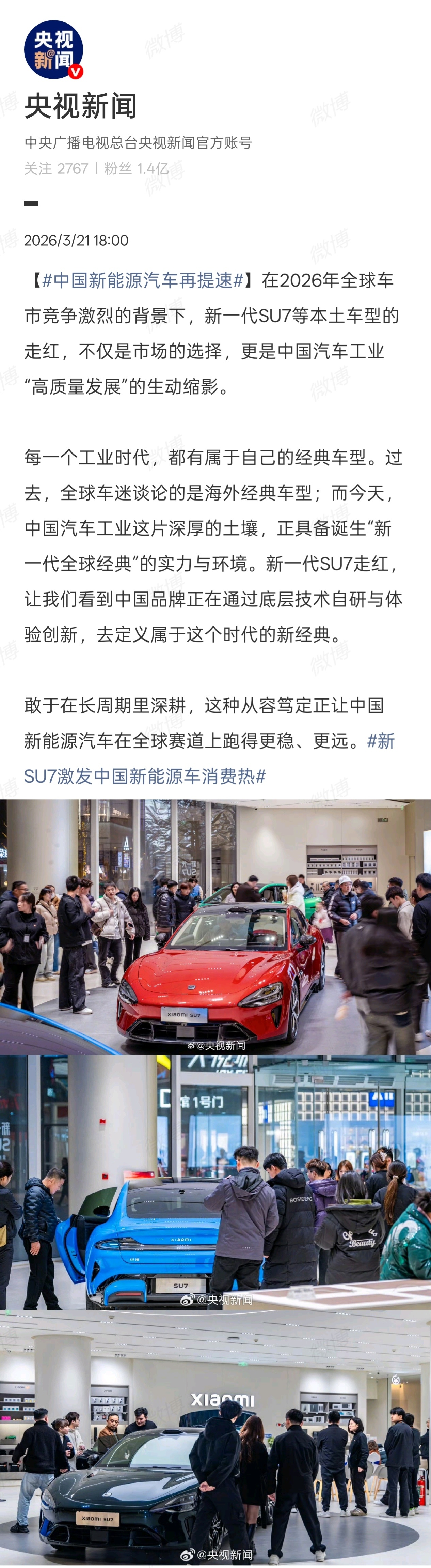 如果说初代 SU7 的畅销表现更像是现象级爆火,那么新一代 SU7 则是将“爆品”思路深深烙印在了小米汽车长期发展的道路之上——凭借长期以往的技术投入 + 稳扎稳打的产品力就能换来广大车主一如既往的高度认可,我们甚至可以说,这就是「技术创新推动消费热潮」的具象化体现,这也定将成为中国新能源汽车市场未来的主节奏。「技术」和「体验」已经成了当下消费品评判一辆“好车”至关重要的两个关键词,这是市场与广大车主的选择,也是小米汽车一路以来始终坚持的方向。