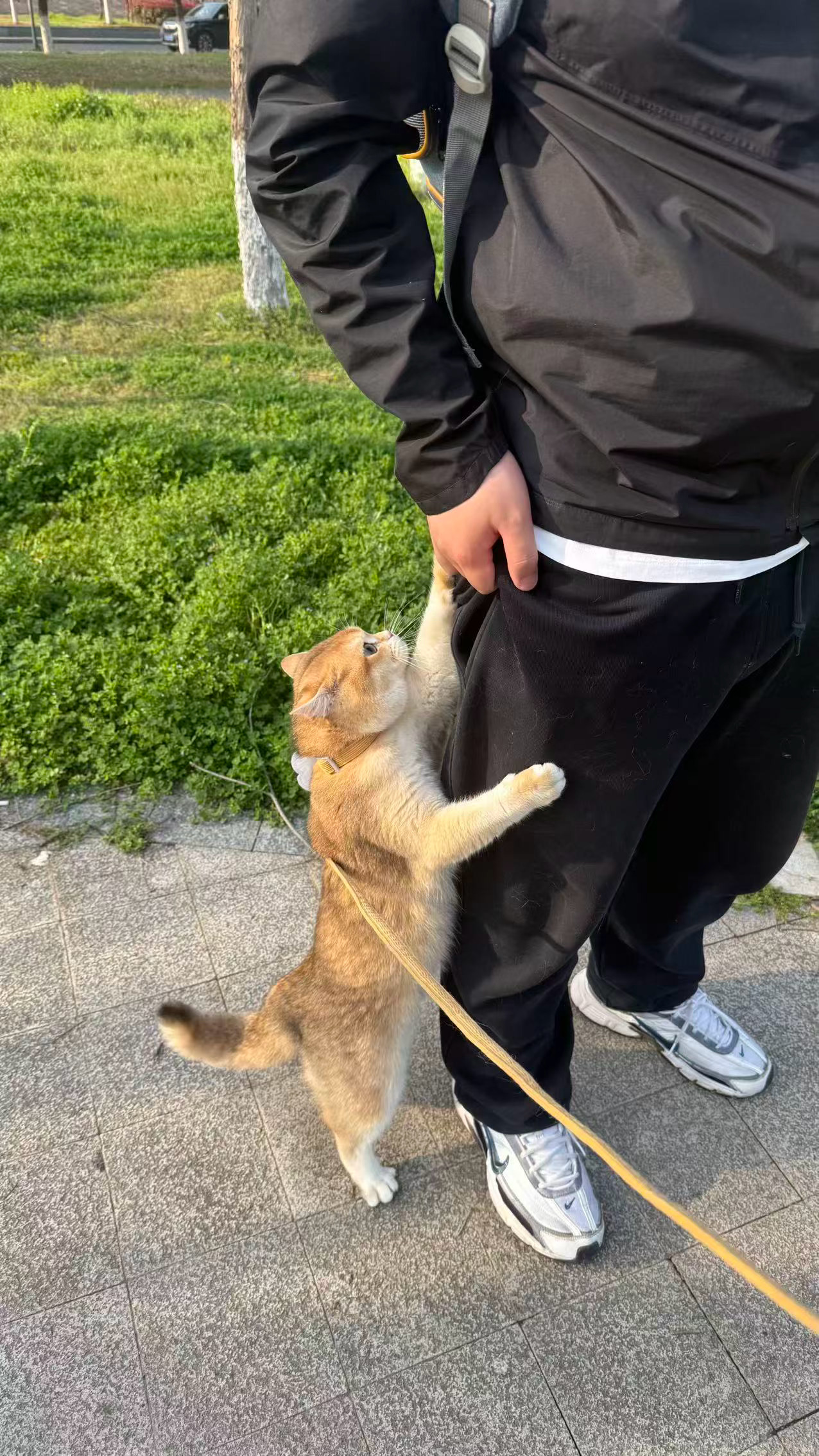 小猫害怕了想往包里跑差点把我裤子弄掉了