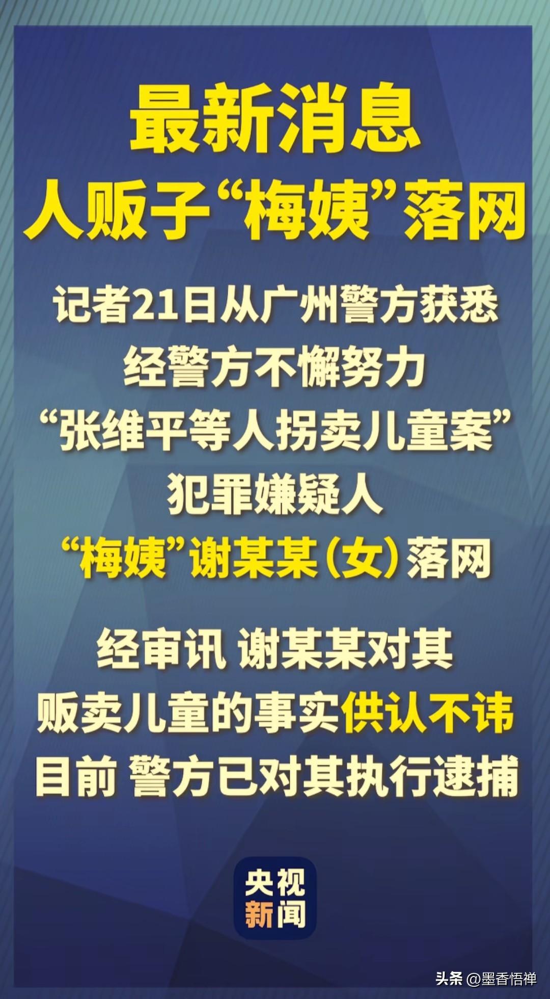 大快人心!人贩子“梅姨”终于落网!20年追逃,正义终至 看到今天这消息真是太解气了!盼了整整20多年,让无数家长牵挂的人贩子“梅姨”(谢某某),终于被广州警方抓获了! 这个潜藏多年的犯罪嫌疑人,终究还是没能逃过法律的天网! 她是张维平拐卖团伙的核心中间人,专门负责联系买家、抽成分钱,藏了20多年才落网。从不拍照、从不拿出身份证,跟人同居好几年,对方都不知道她真实姓名和来历。会说粤语、客家话,混迹在广州、河源、韶关一带,改名换姓、刻意伪装。 咱们之前看到的所有模拟画像,全是靠跟她同居的老汉回忆描述画出来的!知情人士说,这些画像和她真人的相似度连30%都不到,这也是她能长期逍遥法外的重要原因。 2025年,专案组通过海量线索排查,发现谢某某的体貌特征、活动轨迹,和在逃多年的“梅姨”高度吻合。经过反复核实,最终确认了她的身份。 2026年3月21日,广州警方正式通报:谢某某已落网,对贩卖儿童的犯罪事实供认不讳,已被依法逮捕。 更让人欣慰的是,当年被她和张维平团伙拐走的9名孩子,早已全部被警方找回,一个个都回到了亲生父母身边,这才是最让人安心的结局! 拐卖儿童是严重危害社会的犯罪行为,他们为了谋取非法利益,将孩子从亲生父母身边带走,给无数家庭带来了巨大的创伤。孩子丢失后,父母长期奔波寻找,在思念与痛苦中煎熬,许多家庭因此支离破碎。梅姨的行为必将受到法律的严惩! 现在她终于落网了,正义或许会迟到,但永远不会缺席!愿所有被拐孩子都能平安回家,愿天下无拐,守护每一个家庭的团圆