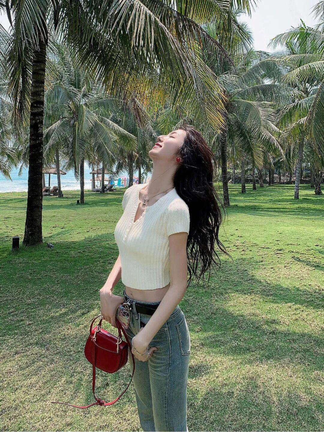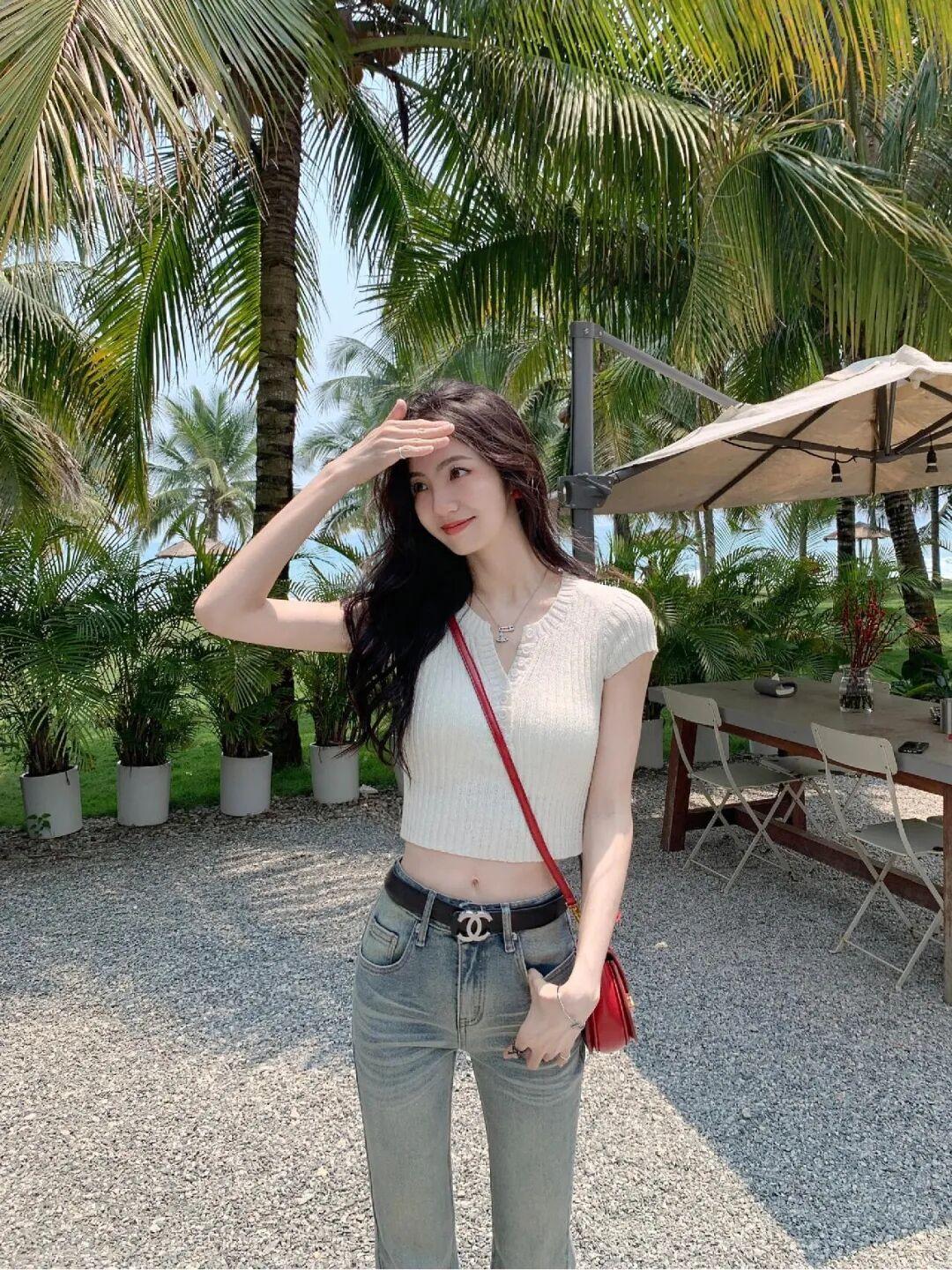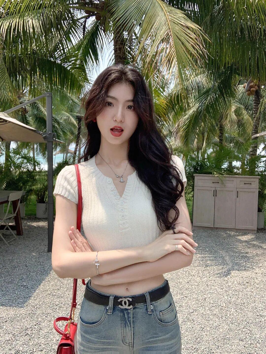 吴千语的衣品真不是盖的,好些年前流行的五分紧身裤又被她拾起来了