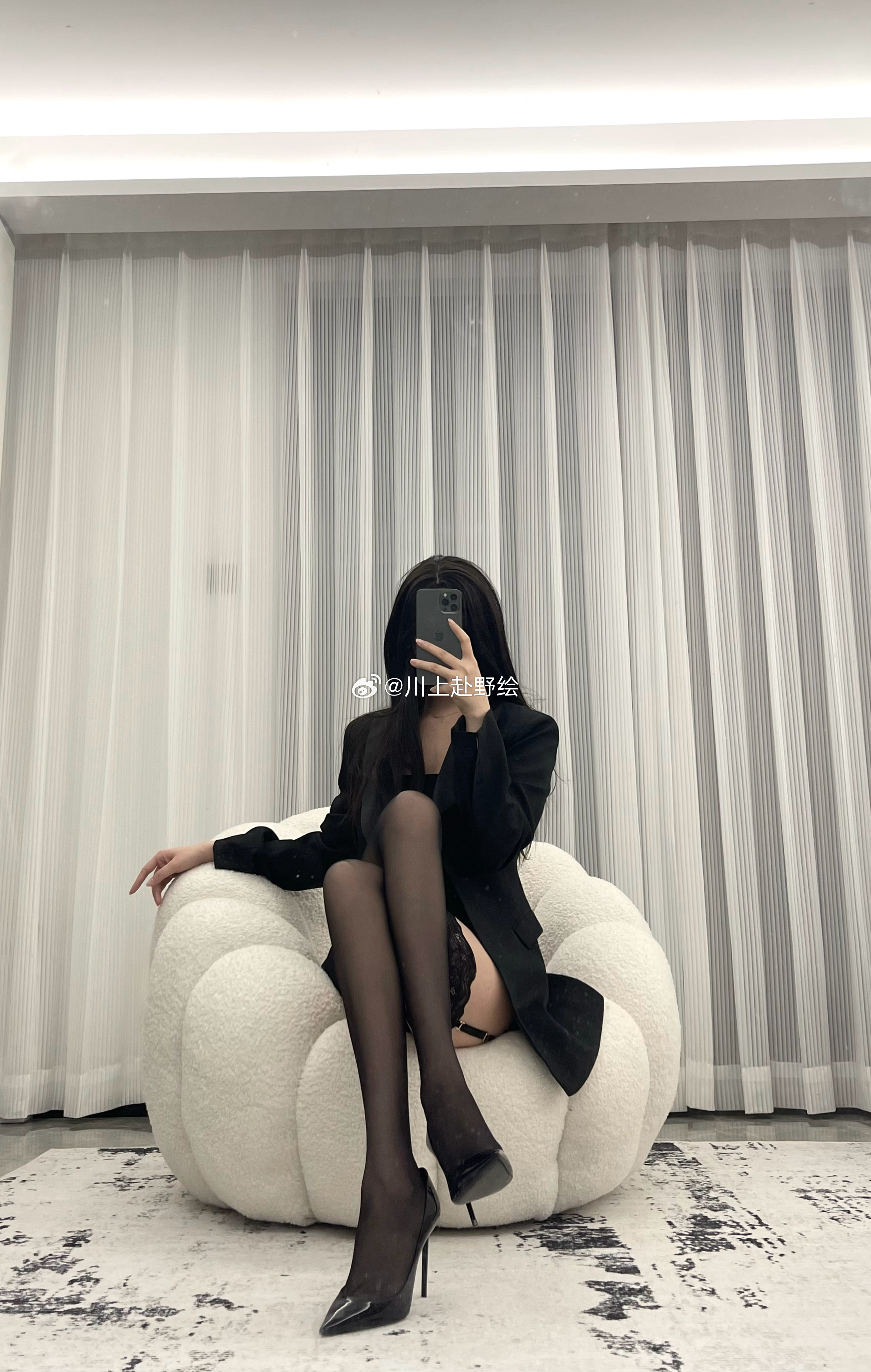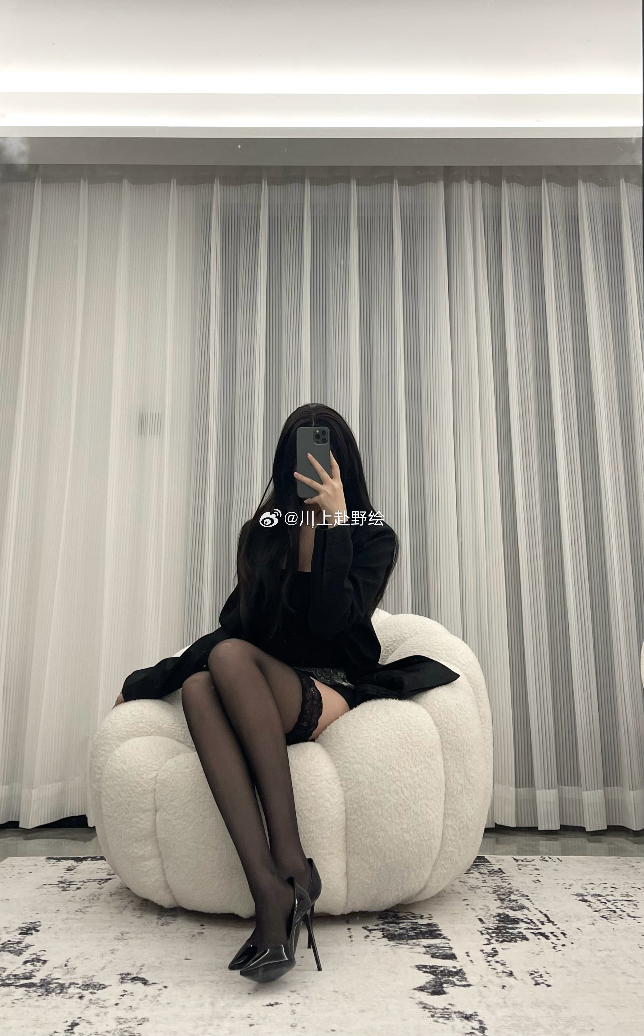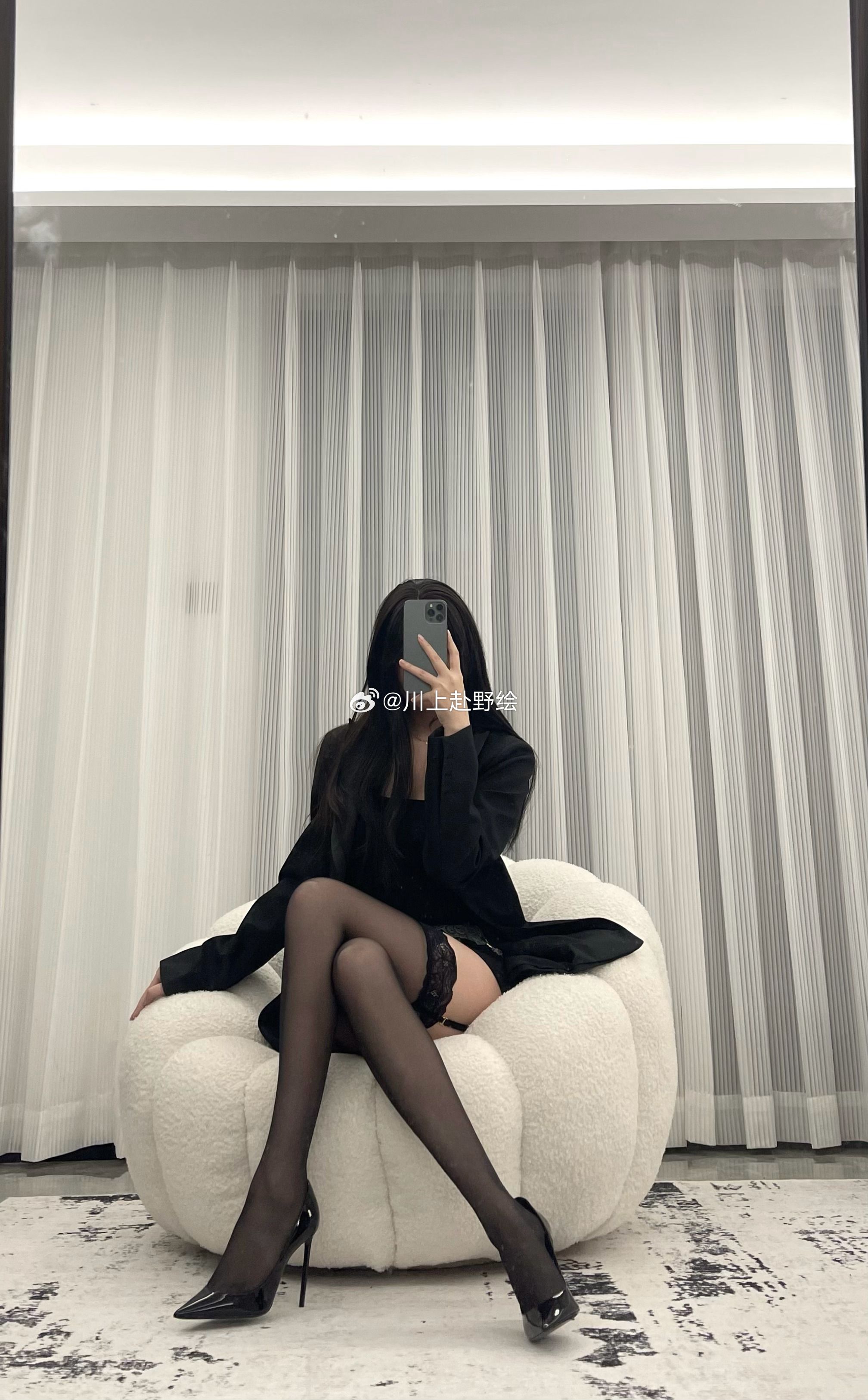 黑色透视衫搭灰色包臀裙,摇曳美女