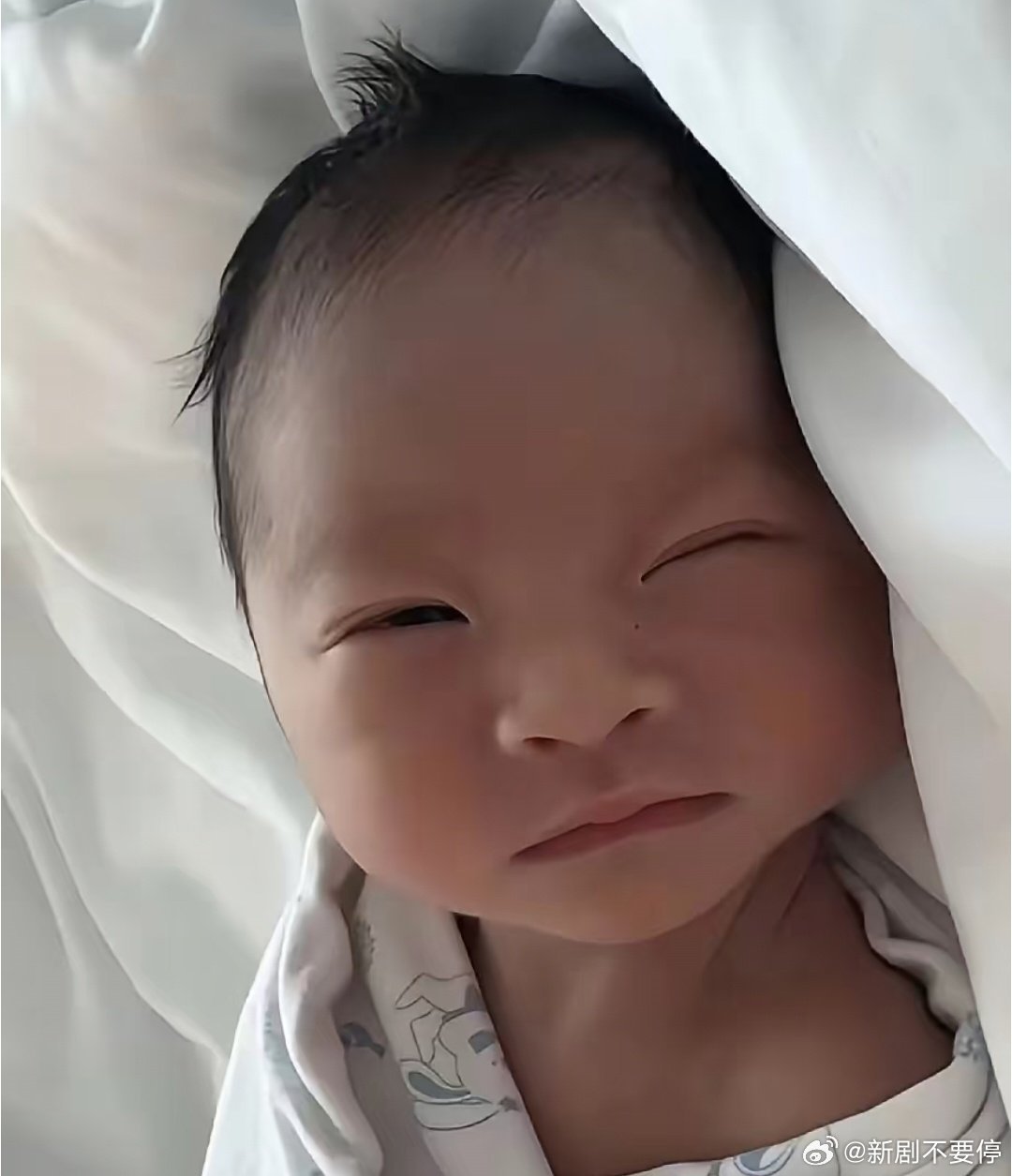马筱梅晒18天的宝贝儿子,长的太萌了,太可爱了,集马筱梅与她老公好基因于一身。