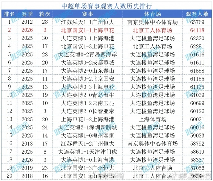 京沪大战打破工体上座纪录 中超联赛第三轮迎来京沪大战,北京国安主场迎战上海申花,张玉宁和陈晋一各进一球,申花客场1比1战平国安。本场比赛共有64118人现场观战,打破工体上座纪录,排名中超历史第2。 国安主场1比1申花张玉宁连场破门 (tyx)