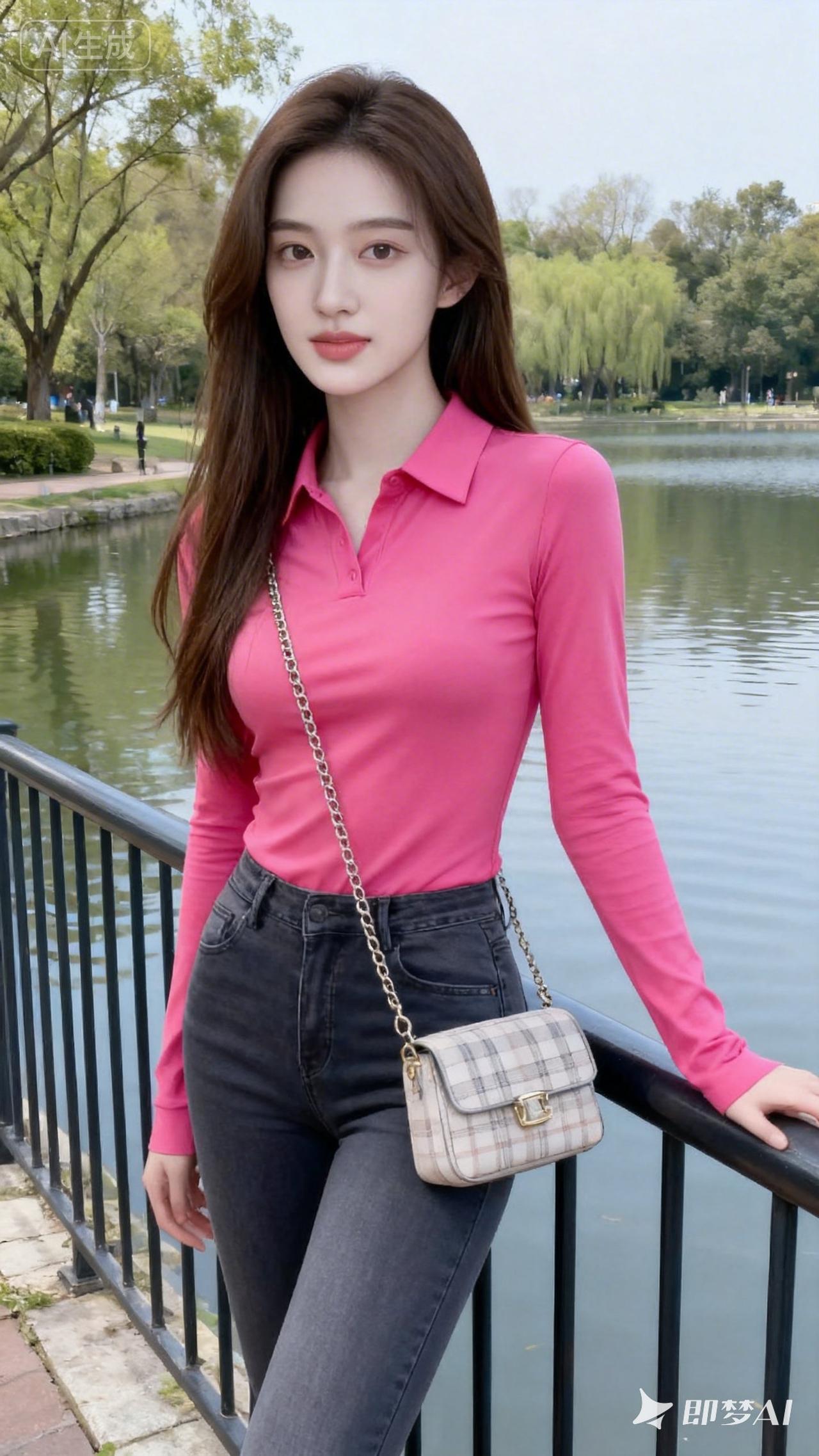 粉色衬衫+牛仔裤,清新自然,元气满满!🌸💕