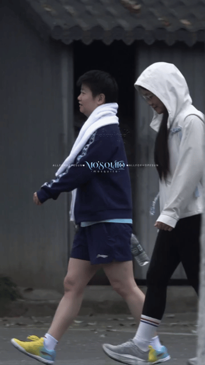 太可爱了,莎莎看到河对岸的人笑了,翔哥也特意盯着看了一下,都在笑。 因为河对岸有很多人在拍他们,大家都给取名草新社,周末的人更多了,比平时拍的人多。 每天她们去练习体能的时候,都能看到。 莎莎和队医小姐姐,还有翔哥一起, 边走边笑, 莎莎的状态特别好, 封训顺利,加油莎莎。
