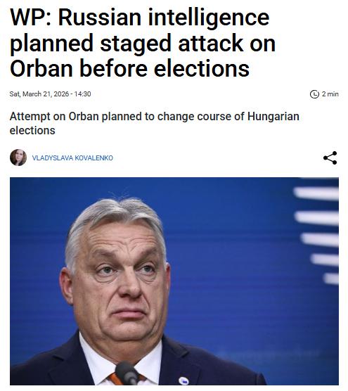 据《华盛顿邮报》报道,俄罗斯对外情报局制定了针对对匈牙利总理维克多·欧尔班的暗杀未遂计划。上个月,俄罗斯对外情报局的一个部门对欧尔班支持率的急剧下滑表示担忧。据报道,操作人员在一份内部文件中提出了一项战略,旨在“从根本上改变整个选举运动模式”。计划是对匈牙利总理发动示威性“攻击”。文件指出:“这样的事件将使竞选的认知从理性的社会经济问题转向情感层面,关键主题将成为国家安全以及政治体制的稳定与防御。” 目前没有针对欧尔班的实际暗杀未遂。匈牙利总理发言人佐尔坦·科瓦奇未回应记者的提问。克里姆林宫发言人德米特里·佩斯科夫称该报告为“虚假信息”。