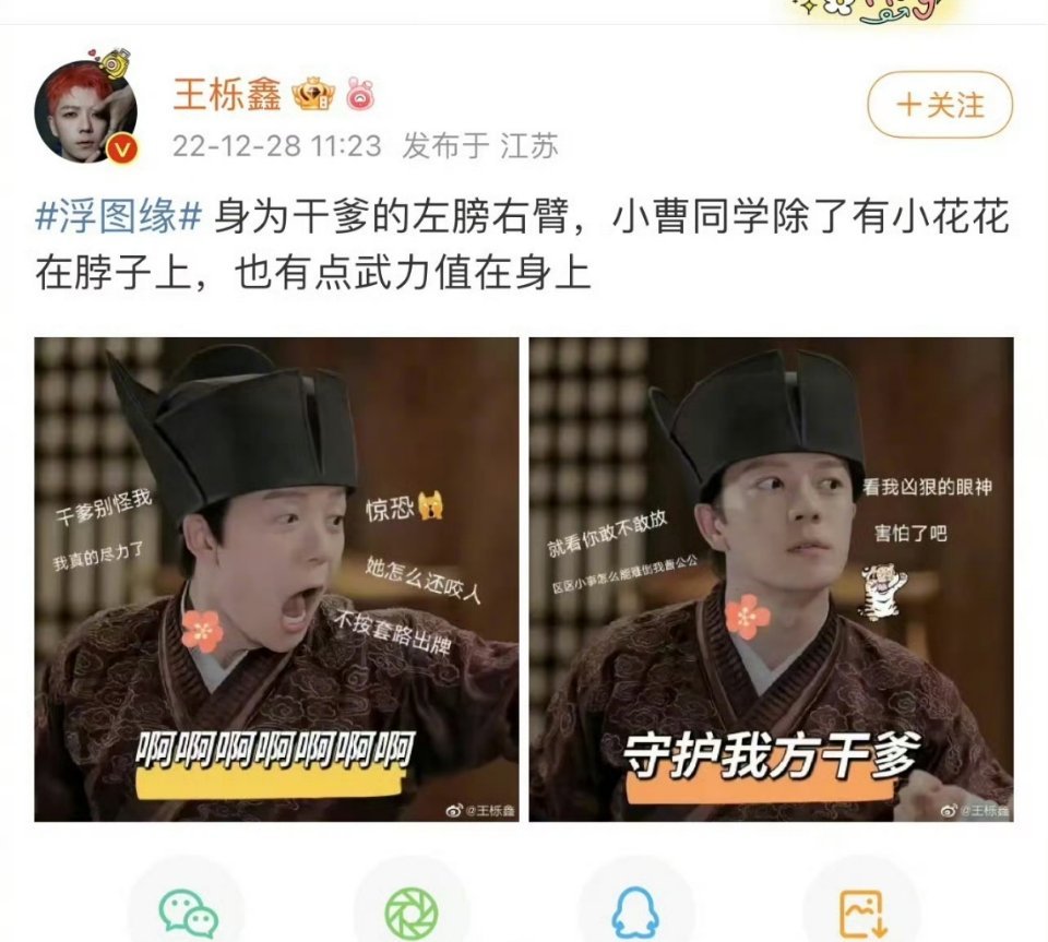 王栎鑫说王鹤棣不配当干爹 玩游戏被问到“王栎鑫演王鹤棣干儿子时的内心想法”,王栎鑫脱口而出“他不配”,立马又接上“那谁配”,好友就是敢说哈哈哈哈~你好星期六