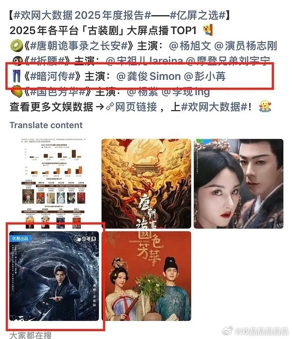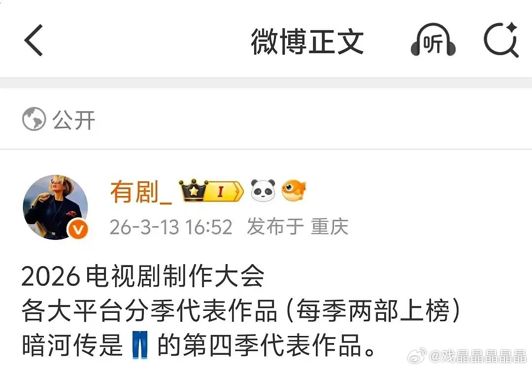 龚俊的《暗河传》在没有氵的地方很牛,也是 2026电视制作大会上,优酷Q4代表作。