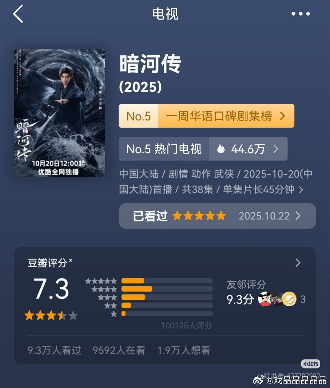 剧版暗河传年末上线突围为2025优酷大屏点播第一,全员上桌,豆瓣7.3(大男主群像武侠剧)