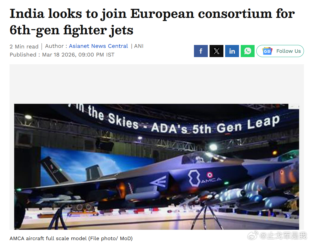 印度也准备搞六代机啦!正寻求加入欧洲六代机项目本月中旬,印度国防部已向该国国防常