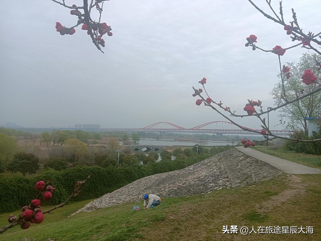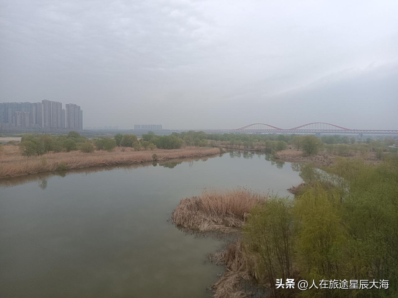从下午2点半开始,我从浐灞湿地公园东侧围外绿道一路徒步自南往北“穿越”,给自己定的“锻炼”目标是走到北头的灞渭桥和地铁10号线公轨大桥!全程大约有6公里!一路上有和我一样慢悠悠的步行者,但更多地还是骑着单车的“追风者”!公园就在我身旁擦肩而过,虽然有一面长长的围栏相隔但挡不住透绿的春色!3点多的时候我登上了渭灞桥观景亭,此刻目之所及是灞河与渭河涛涛水流的相汇!西安灞河流域 灞渭桥湿地公园西安跑步路 灞桥打卡 西安河堤路风光 灞桥生态公园 晒晒西安的城市风光