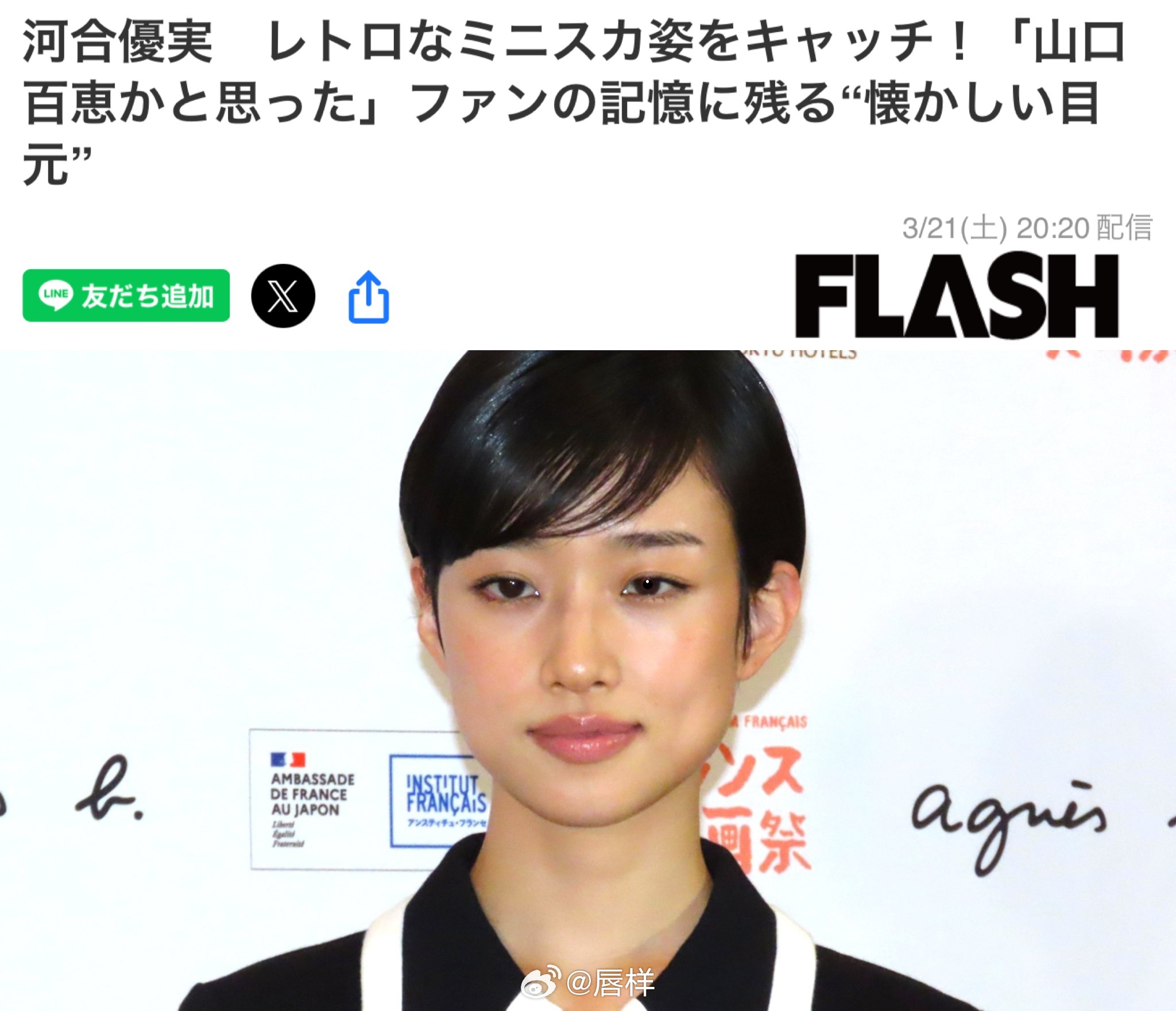 FLASH:河合优实被拍到复古迷你裙造型!粉丝惊叹:“还以为是山口百惠”,令人怀念的眼眸令人印象深刻