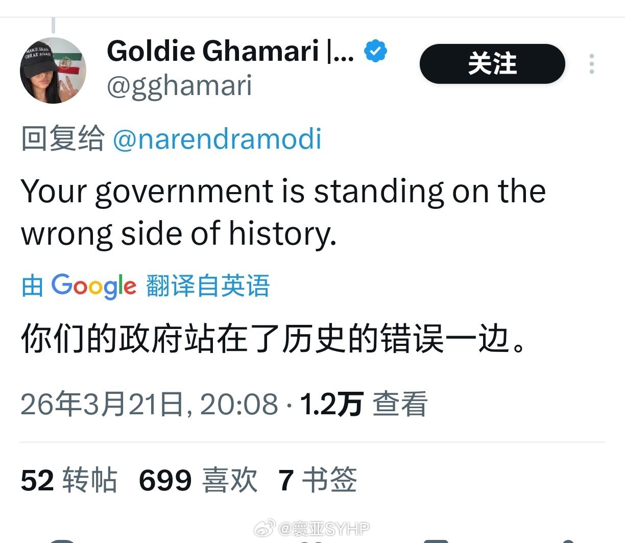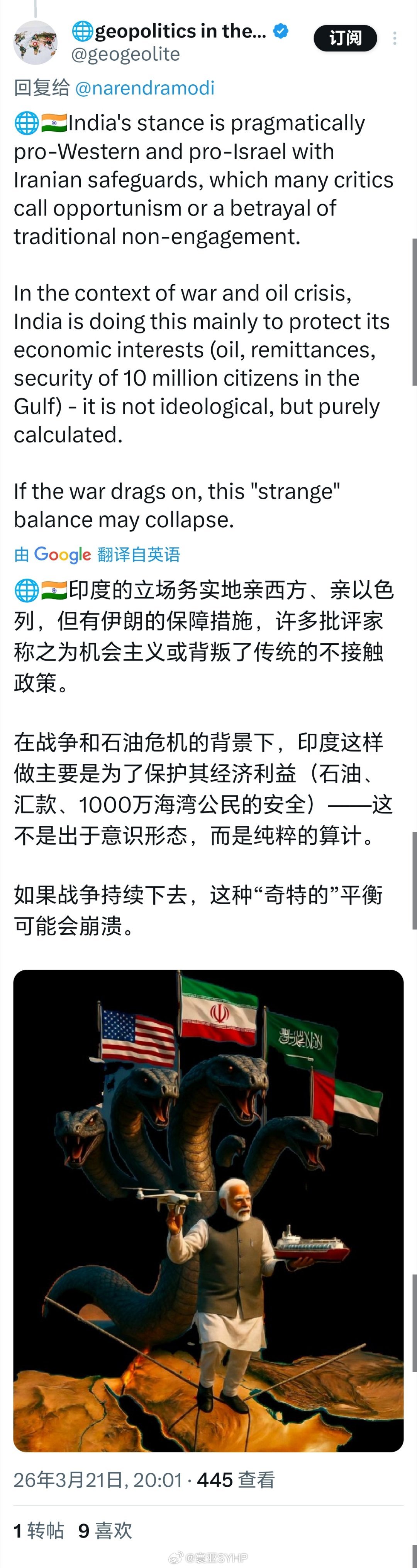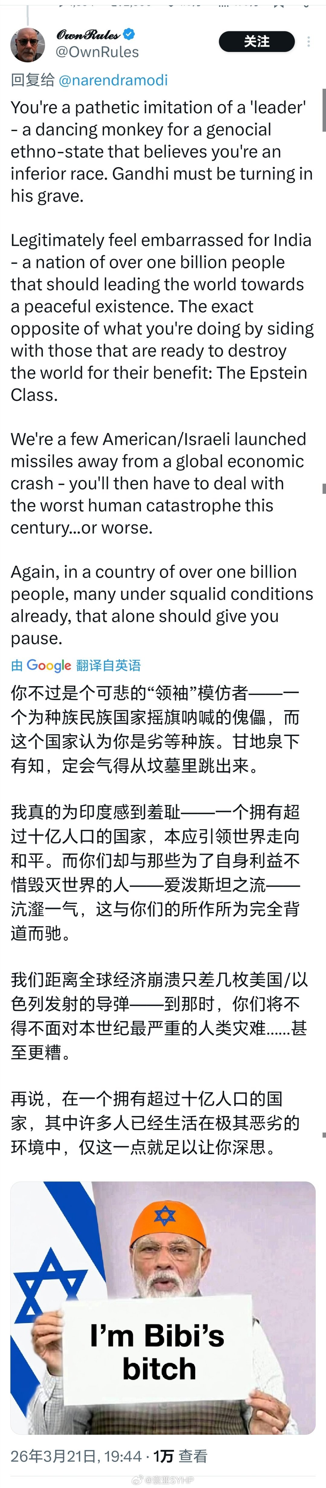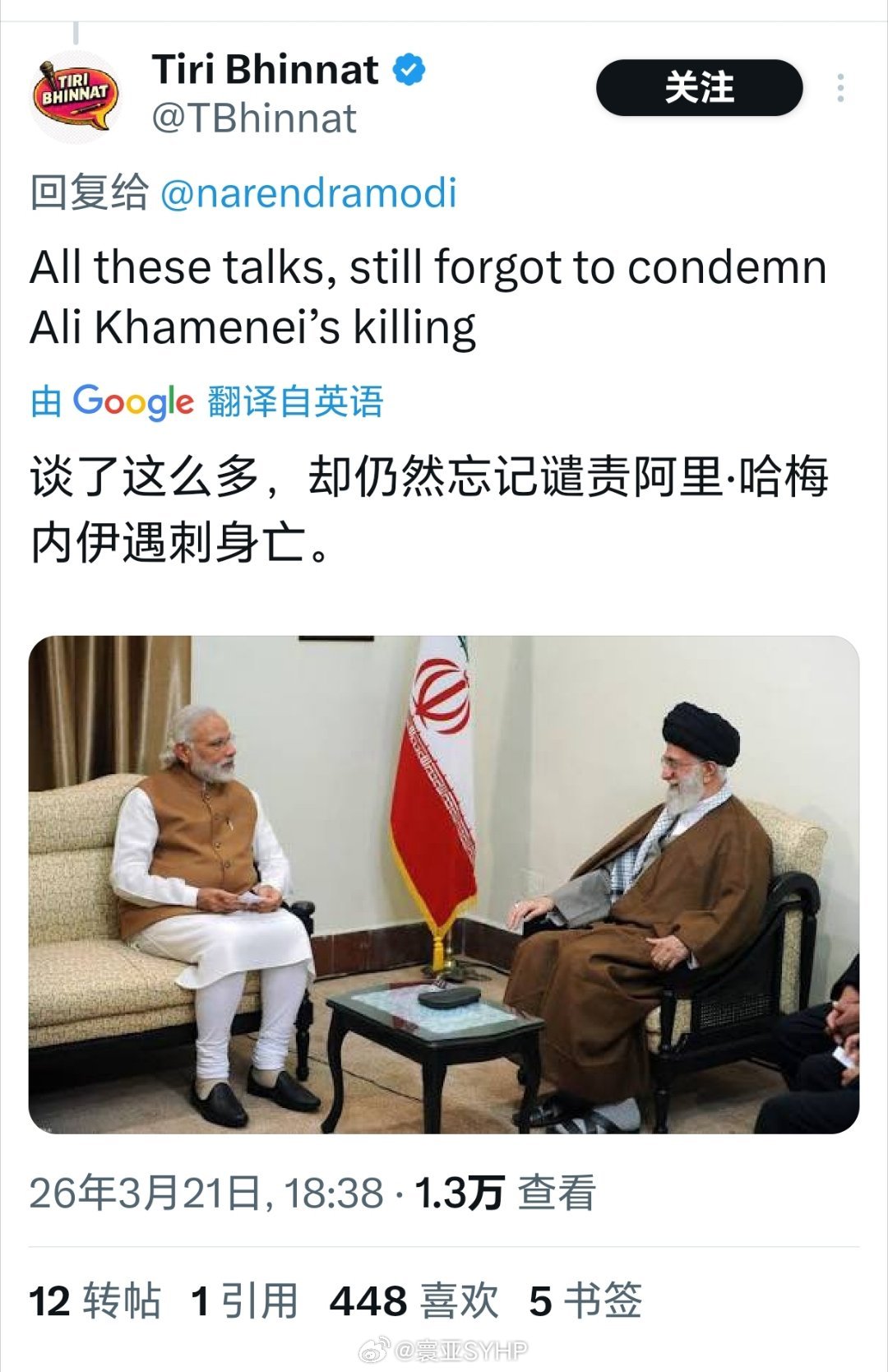 莫迪与伊朗总统通话印度总理莫迪发文称,再次与伊朗总统佩泽希齐扬通话。伊朗遭美国以色列袭击,莫迪一句话也不提。还是看评论才精彩。
