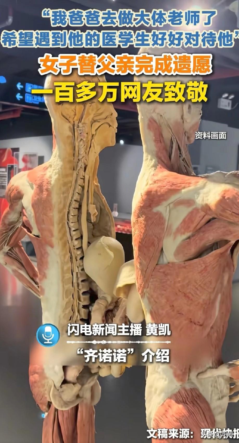 “我爸爸去长江大学做大体老师了!” “希望遇见他的同学好好对待他” 女子替父亲完成遗愿,一百多万网友看到网友“齐诺诺”的留言瞬间泪目… 毛世平,湖北荆州松滋人,73岁去世;年轻时养鱼、做水产批发,性情和善正直。十多年前,他瞒着家人独自签署遗体捐献志愿书,事后才告知妻女;家人虽不舍,但尊重他“为医学做贡献”的决定!- 农历腊月二十五:突发疾病离世,走得很急,未留书面遗嘱! 3月20日(父亲“五七”):女儿(网名“齐诺诺”)在社交平台发帖: “我的爸爸去长江大学做大体老师了,希望遇到他的医学生好好对待他。” 这条留言200多万浏览、20多万点赞、上万评论,无数网友致敬这位平凡而伟大的父亲。 女儿回应:“爸爸啊,已经有一百多万人来看过您了!他们都向您致敬! 我想说毛世平叔叔,您这辈子普普通通,善良了一辈子,您没有走,只是换了一种方式活着——去当了一名大体老师,用自己的身体,教一群孩子救人、懂生命、懂珍惜。以后会有很多医学生轻轻叫您一声:老师。 您用最沉默、最伟大的方式,把爱留在了人间……