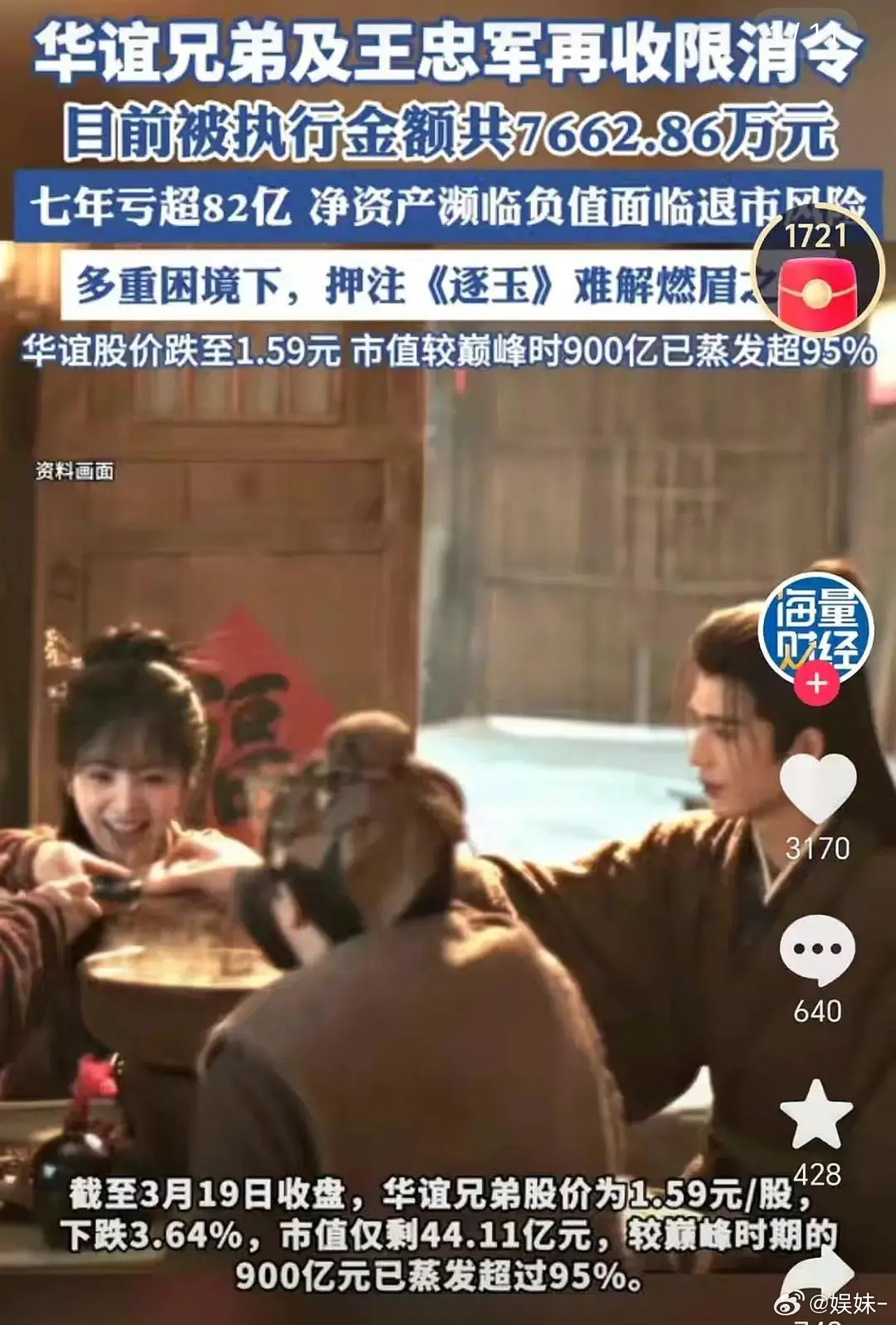 啥意思?华谊本来打算靠煮鱼翻盘,结果股票跌了?