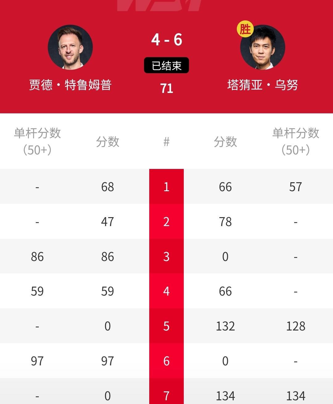 大冷门!6-4淘汰世界第一特鲁姆普,泰国一哥塔猜亚爆冷晋级决赛,约战奥沙利文!刚刚结束的2026年世界公第二场半决赛爆出大冷门,世界第一“准度王”贾德-特鲁姆普发挥不佳,总比分4-6输给泰国一哥塔猜亚-乌诺无缘决赛。这场比赛,特鲁姆普开场1-0领先,并以3-1领先。下半场回来之后,塔猜亚展开顽强反击,他轰出一波5-1的攻势,总比分6-4将世界第一特鲁姆普淘汰出局。冠军战,塔猜亚将挑战奥沙利文。那么,还会有奇迹吗?奥沙利文 塔猜亚