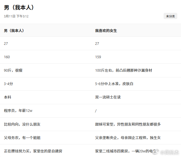 网友询问,他这个条件追这位女生有没有希望?
