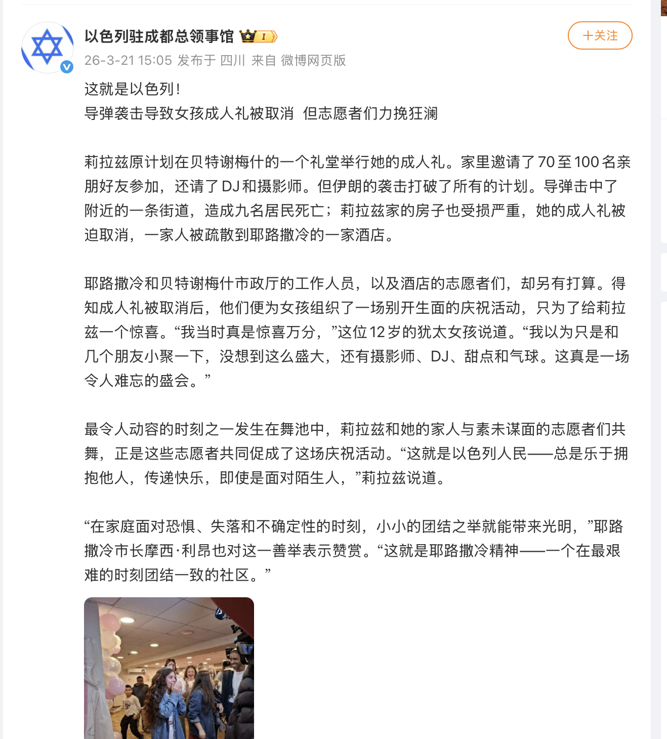 一个女孩的成人礼取消,这才多大的事啊?2月28日那天,伊朗一个小学160多名师生遇难,全都是无辜的孩子啊!还记得加沙的儿童吗?他们简直就是恶魔