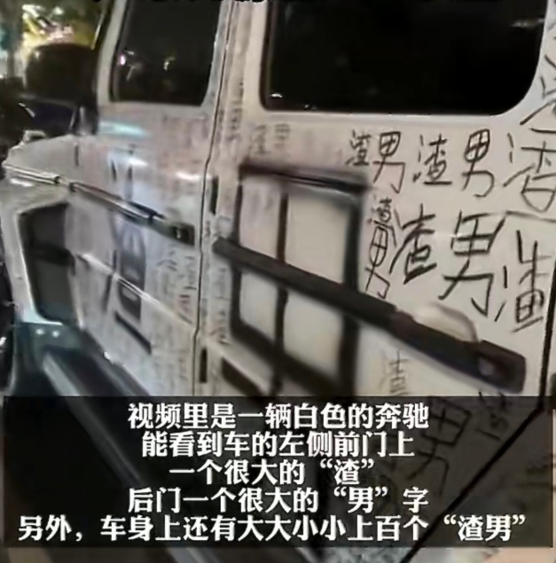 可惜了,居然还是奔驰大G。虽说车身上有写满了“渣男”,但去到洗车店很容易洗去啊,用处不大。