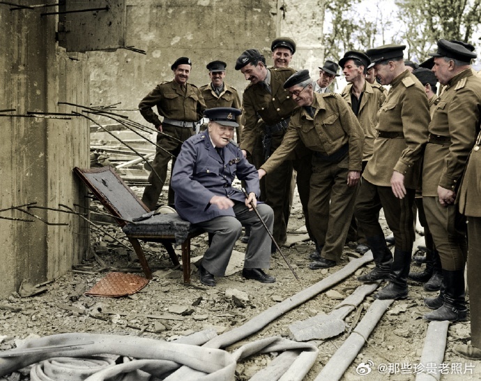 1945年,柏林,坐在元首地堡边的椅子上的丘吉尔