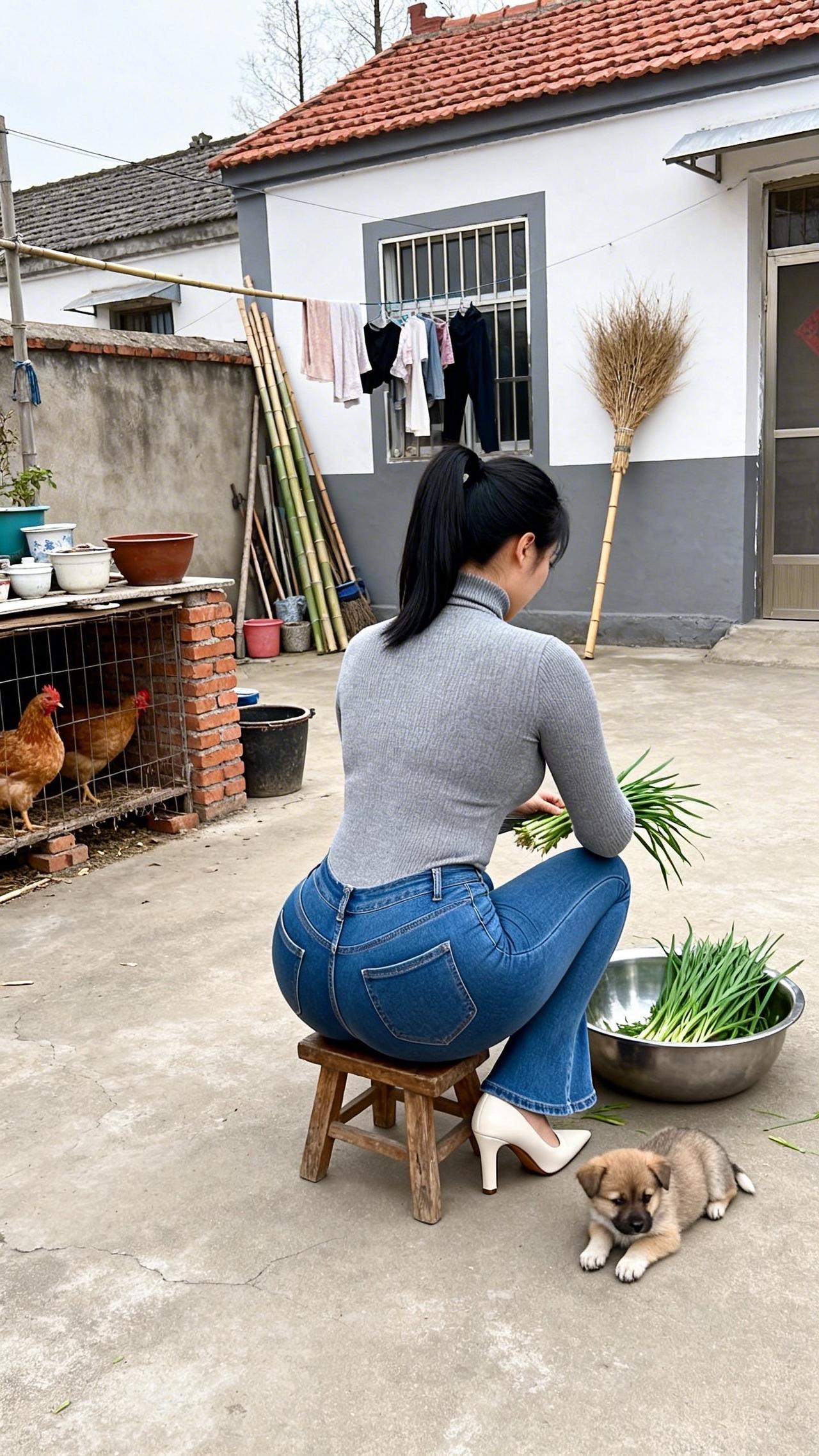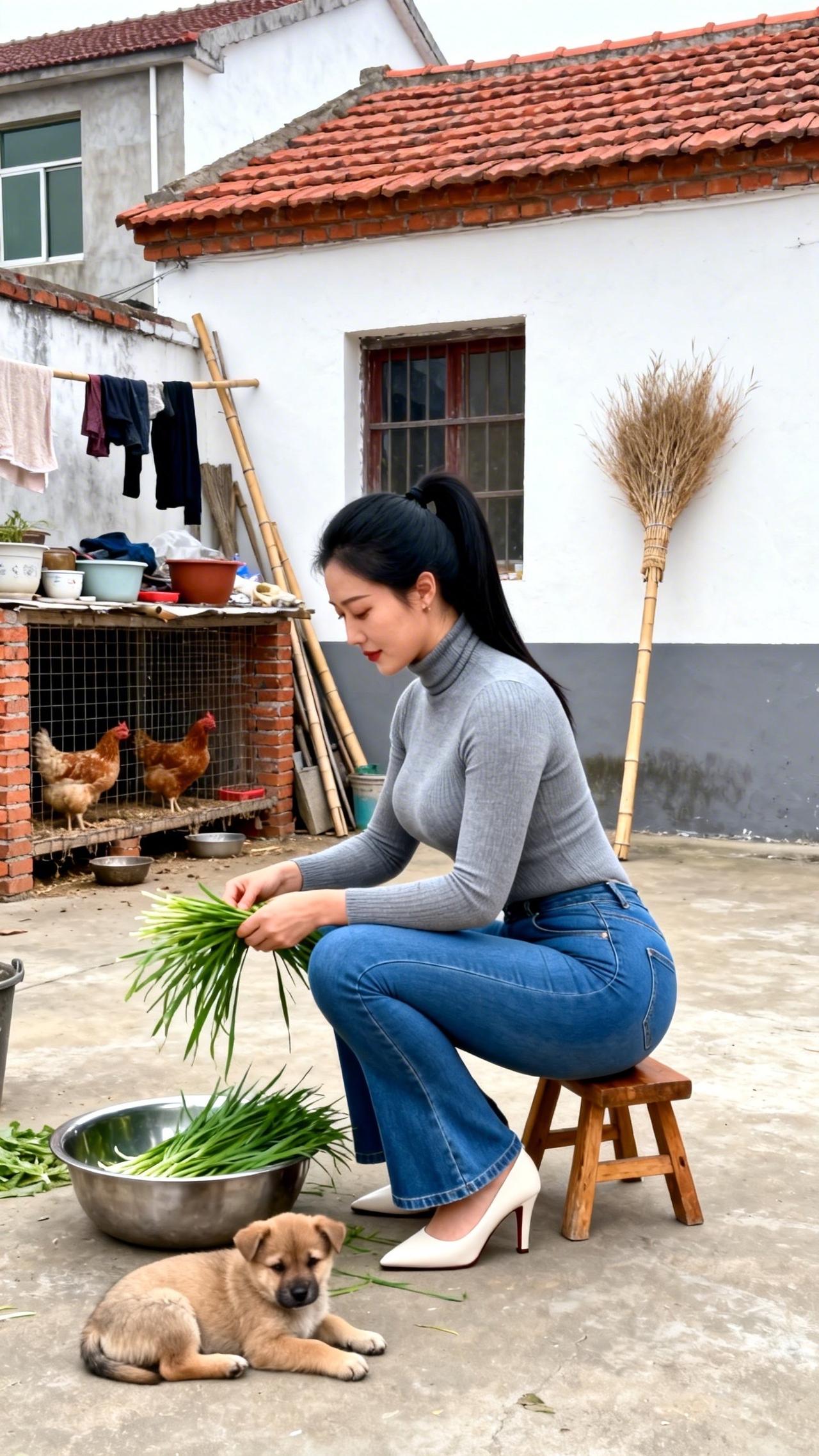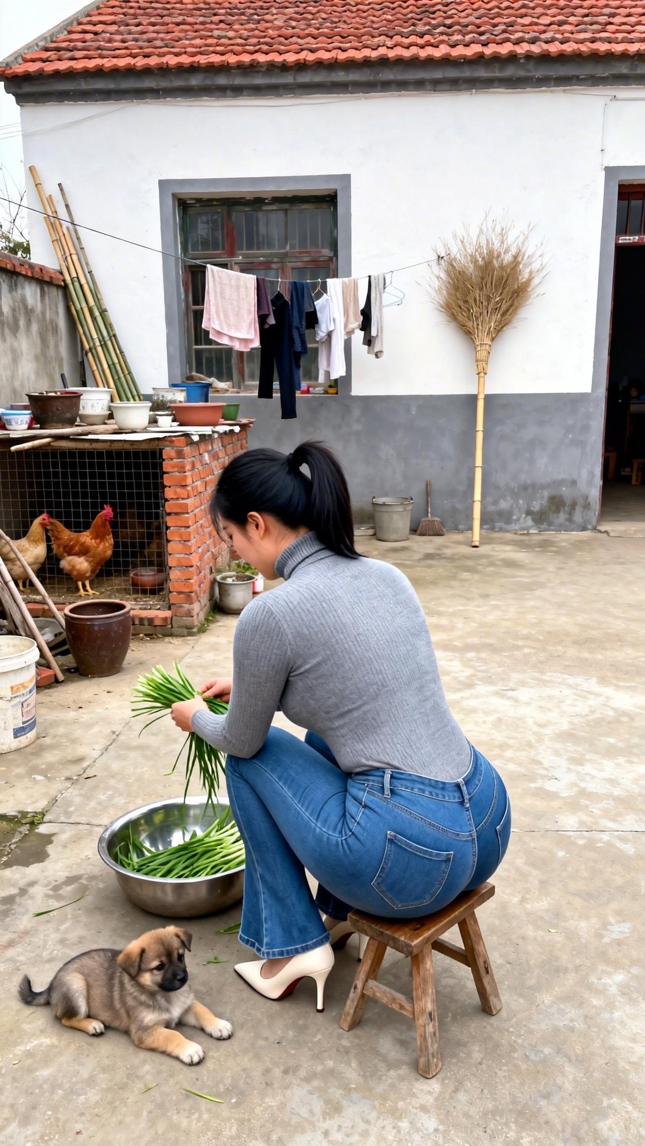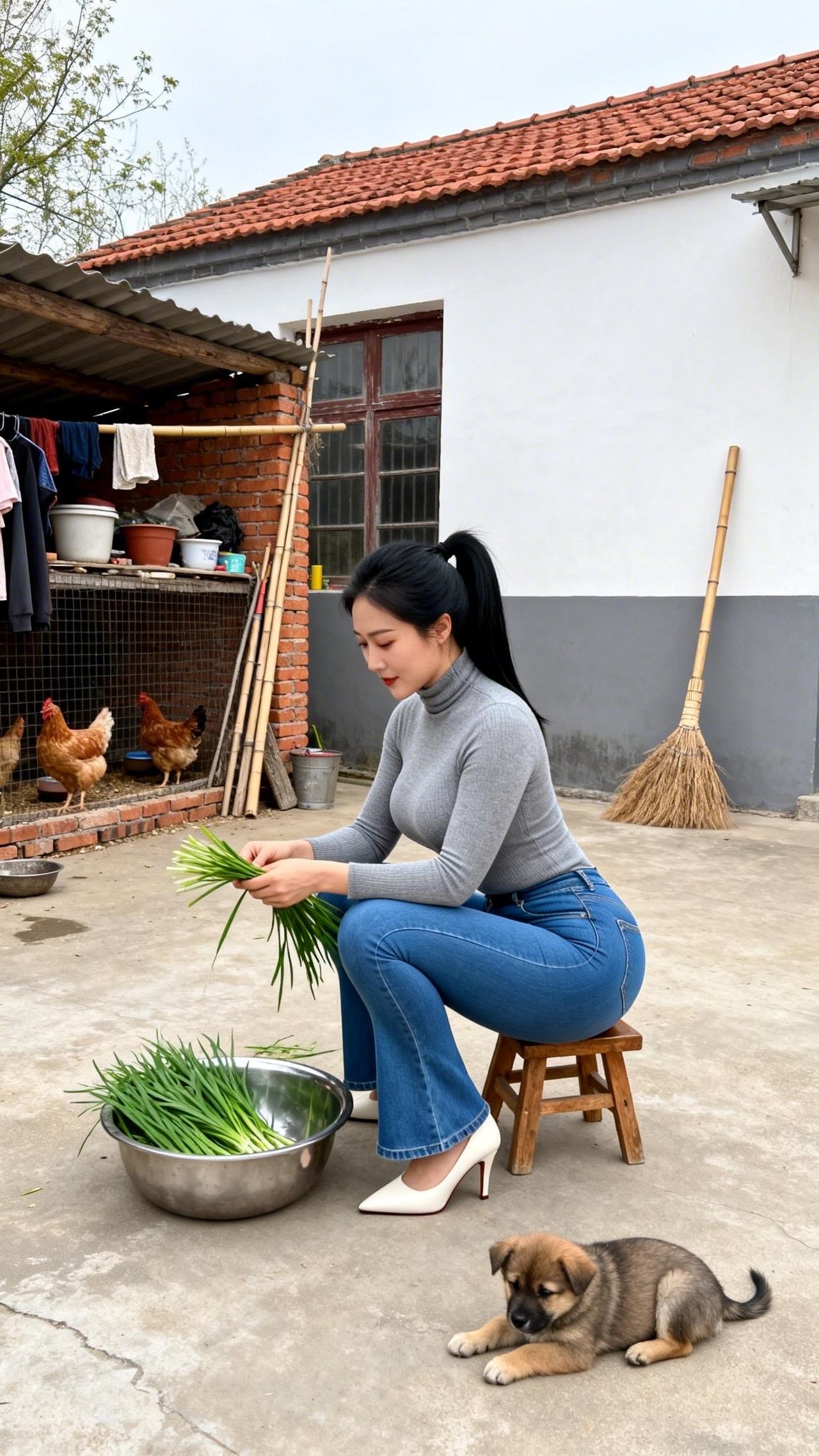 庭院的风裹着烟火气漫过,指尖轻理鲜翠的韭菜,把日常的温柔揉进每一片叶瓣里。檐下鸡群闲踱,幼犬在脚边安然酣眠,木凳与旧屋承载着乡居的踏实,将这份择菜的细碎时光,晕染成最动人的诗意。阳光在院坝洒下暖光,水珠在叶尖轻颤,把烟火人间的安然与松弛,都酿成心底最踏实的暖意,让时光在这一方小院里慢慢流淌,沉淀出岁月最温柔的模样,给寻常日子添上一抹治愈的清甜。农村