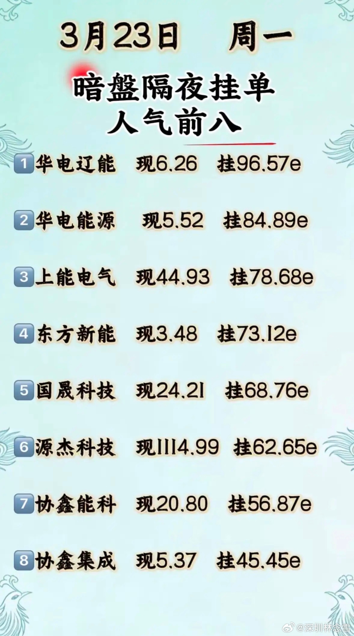 3月23日暗盘隔夜挂单排行榜出炉