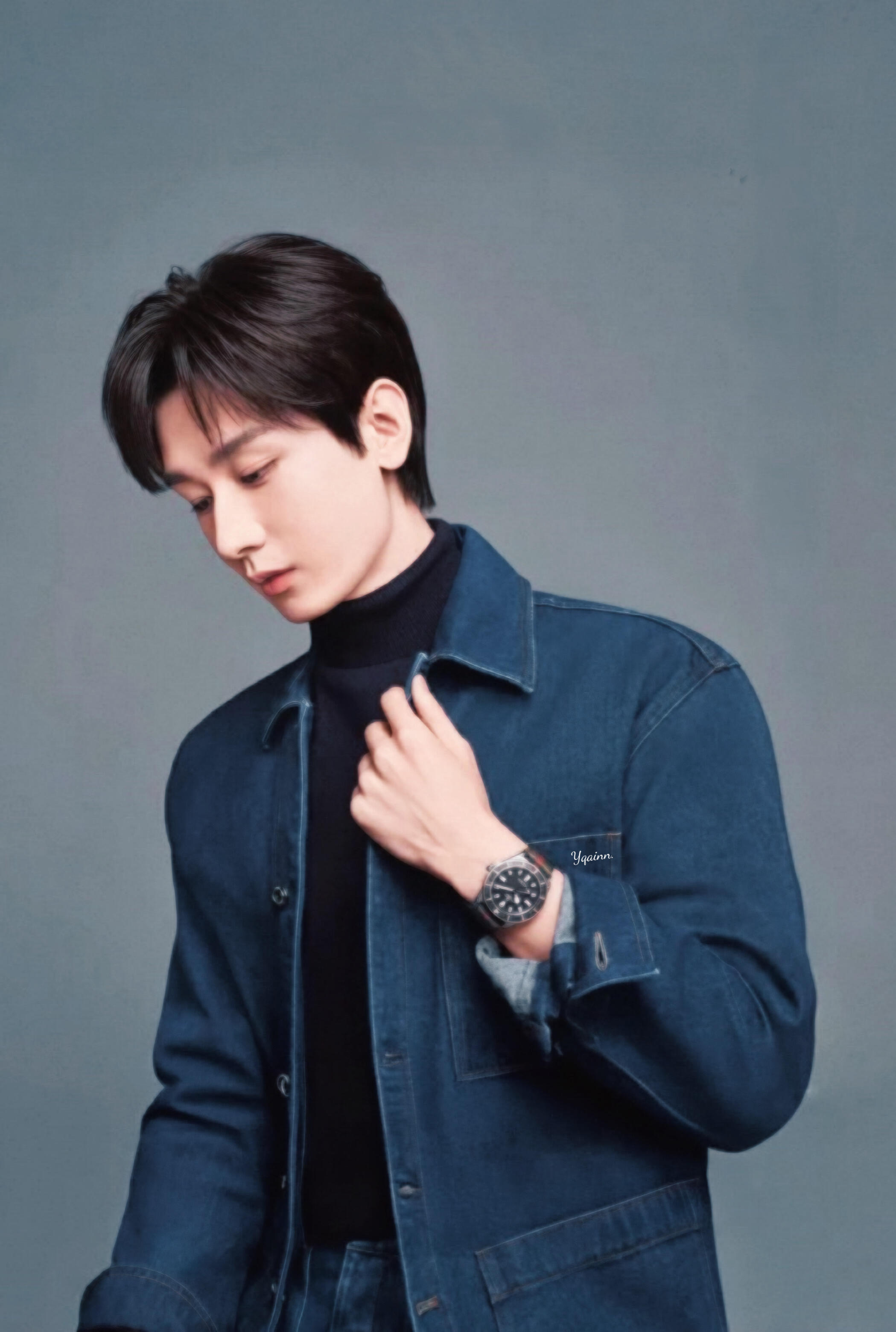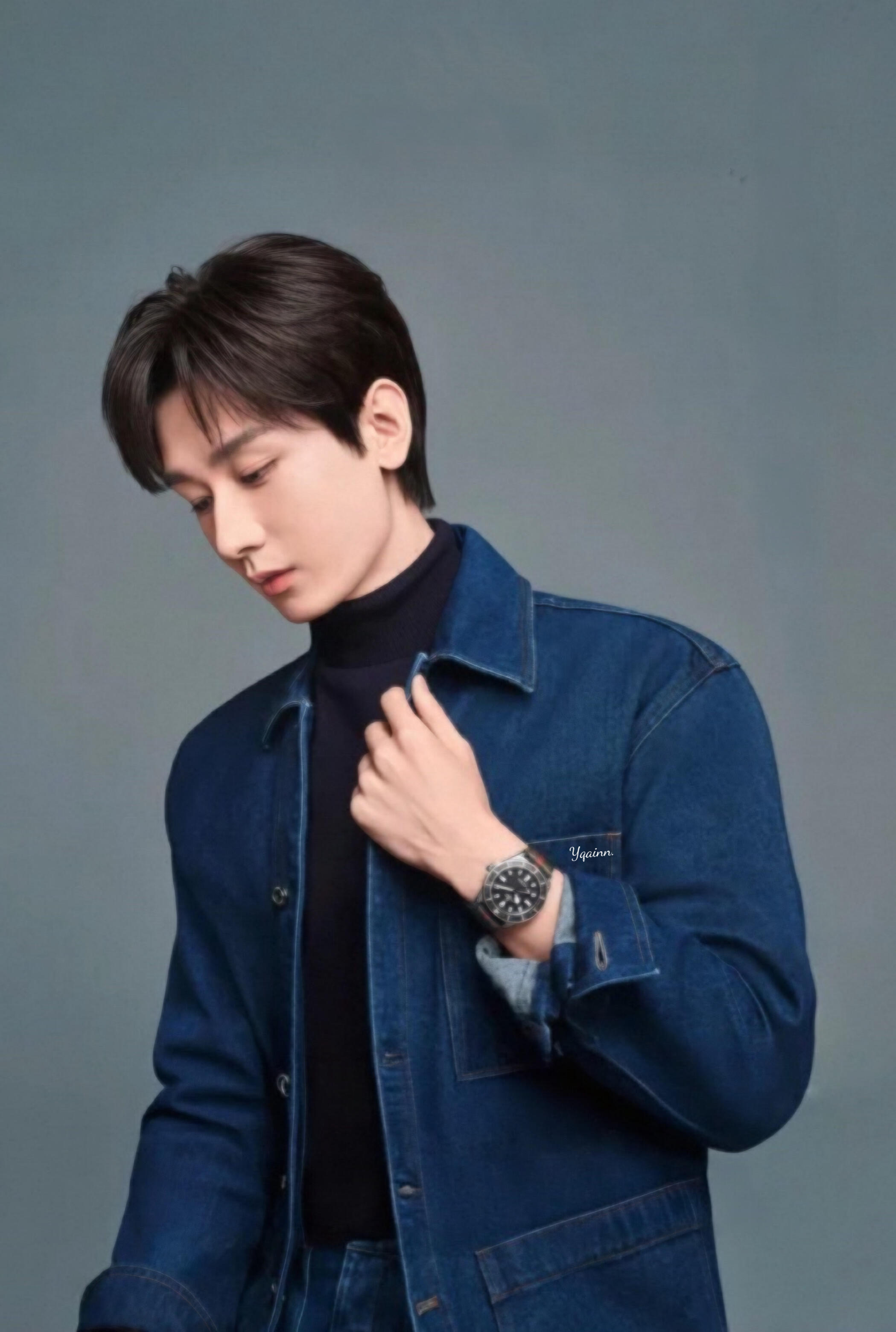 不是啊,这个是新拍的吗,我去,就是黑色高领毛衣加上了牛仔外套啊,啊啊啊啊啊啊,太帅了吧成毅你啥时候拍的呀