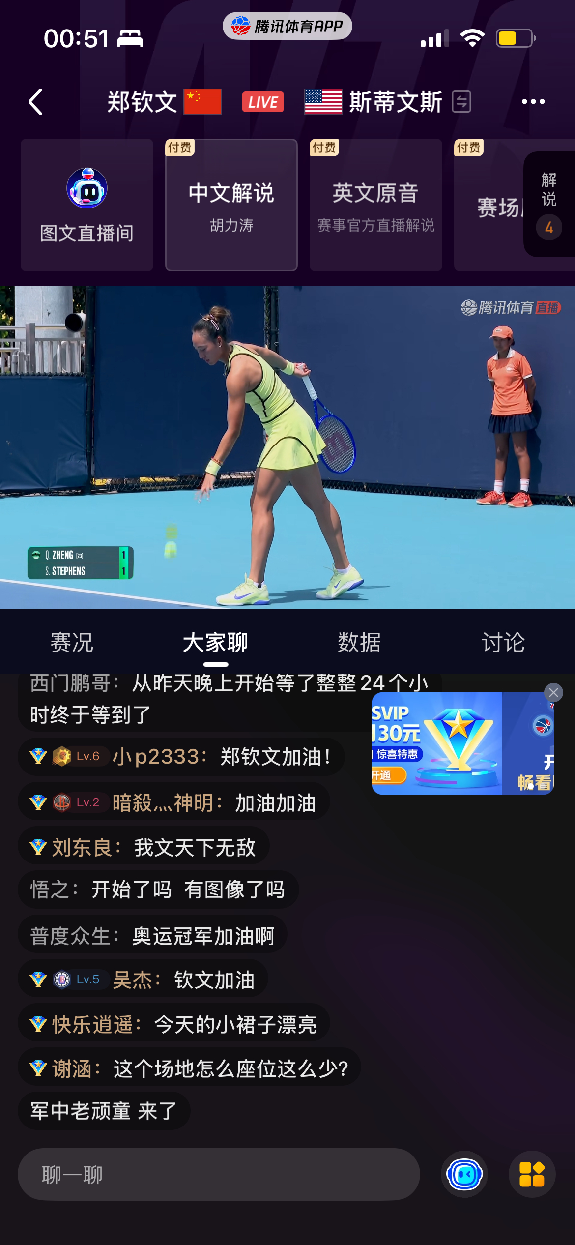 网球talking大会郑钦文vs斯蒂文斯 在看吗?在看!