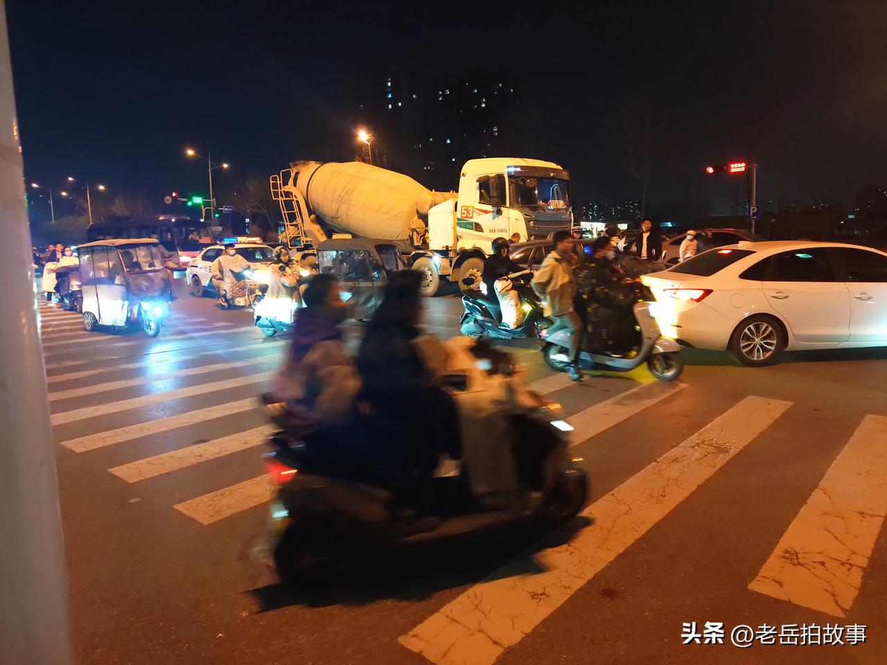 路上那些事儿:昨天晚上七点多,下楼去四处溜达,由于正值高峰期,看到路上车多人多,尤其是因为是双休日的第一天(里边六),前来西流湖公园游园的市民及游客特别多,虽然天已经黑下来了,但似乎游园的人意犹未尽,仍有大量游客在公园留恋,公园门口的路边车辆也停的亦然不少,公园门口的小贩亦然兴奋的大声吆喝着:“冰糖葫芦、凉皮、烤肠五香烤肠……”似乎有一种机不可失的节奏。当走到凯旋路建设路交叉口时,看到一辆混凝土搅拌车和一辆私家轿车发生了交通事故,混凝土搅拌车头东尾西,后面搅拌罐不停转动着停在路口南边的路中偏东的位置,它的车头右边,紧挨着一辆头东北,尾西南的私家轿车停在那里,交警同志正在处理该起交通事故。身边是川流不息的车流人流。北边将要投入使用,扔在施工中的麦德龙主题外墙上已经出现了非常好看的霓虹广告。给我的感觉是,人、车真对,出行必须小心谨慎!