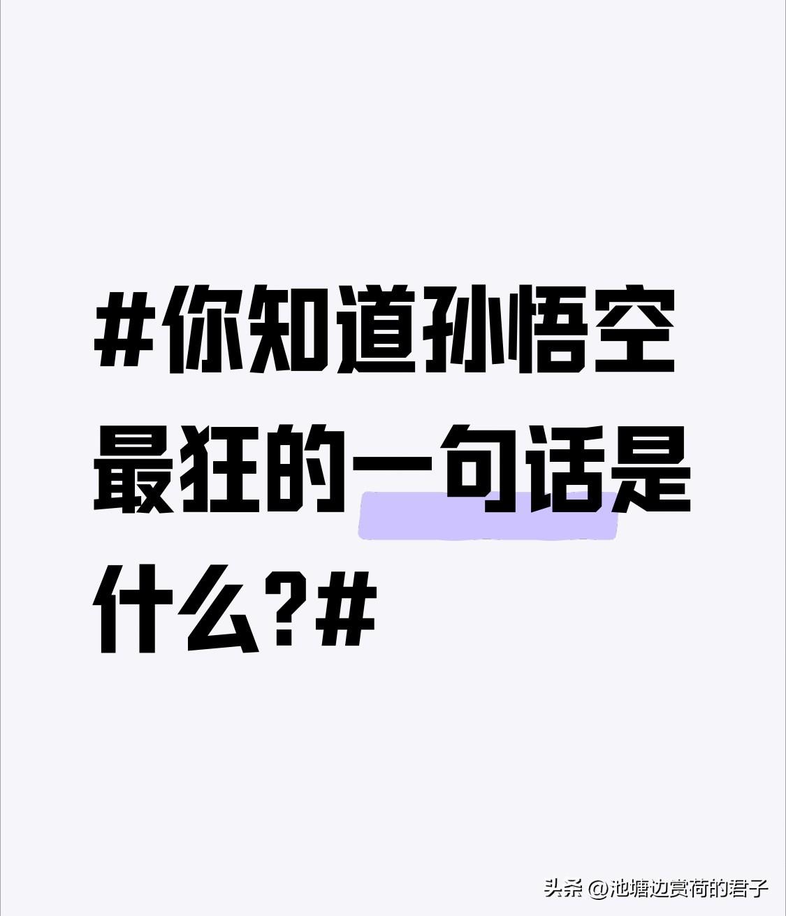 你知道孙悟空最狂的一句话是什么? 要说孙悟空最狂的一句话,我觉得“俺乃是五百年前大闹天宫的齐天大圣孙悟空”必须上榜。想当年,他搅得天庭天翻地覆,十万天兵天将都奈何不了他。这句自我介绍一出口,自带霸气光环,仿佛在向全世界宣告自己的传奇。还有“齐天大圣到此一游”,潇洒又张狂,就像在说这天地都在他的掌控之下。每次看到他喊出这些话,都感觉浑身热血沸腾,这就是齐天大圣的魅力,狂得有理,狂得让人佩服!