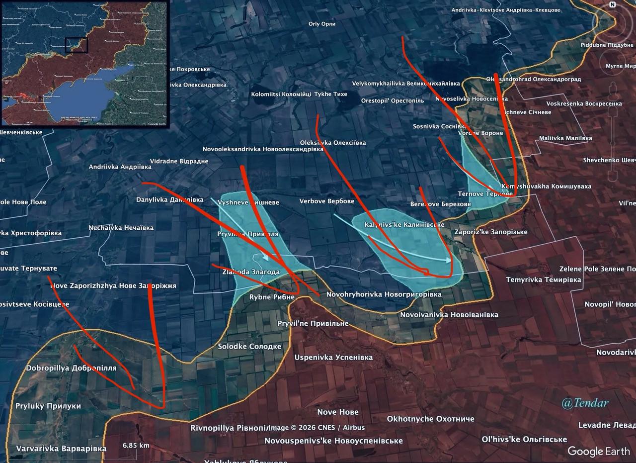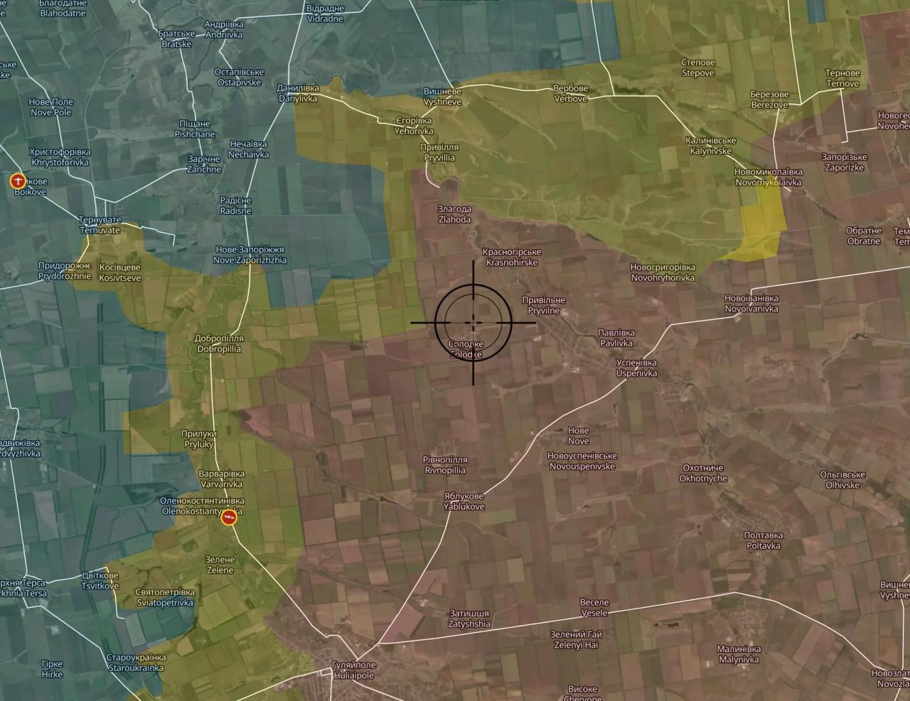 俄军频道称在捷尔努瓦泰以北击退乌军进攻, 实际地点为索洛德克。 坐标:47.