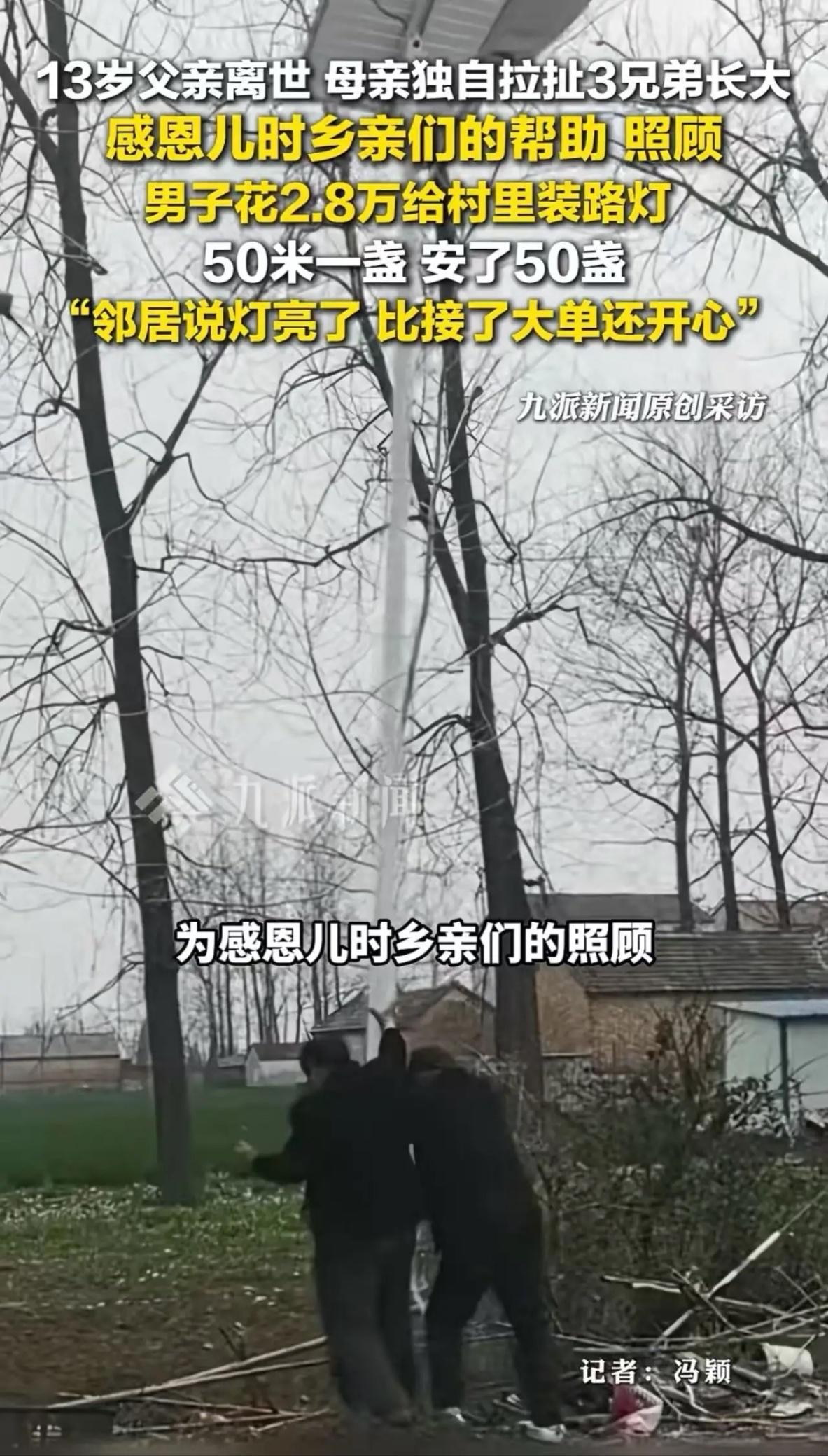 早年丧父靠吃“百家饭”长大的35岁宿州男子花2.8万为全村装路灯:这束光,终于照