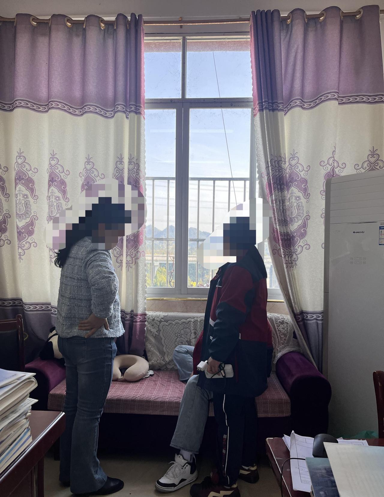 兄弟们,我的教书职业生涯在昨天差点就结束了… 兄弟我在一个乡镇中学教初中(如图1),昨天下午最后一节课办公室其他老师都出去了,就我一个人在办公室等下班。 突然有两个女学生进来,其中一个在门口,另外一个进来后,在其他老师办公桌附近看了大概十几秒,我以为是其他老师叫来抱本子或者拿东西的,没太在意。结果这个女生突然打开窗户,一脚踏上沙发。就开始跨过去了,一只脚已经过去了,半个身子在外面了,我一个健步上去、把她拉了下来。吓死我了,我拉下来之后,人都在发抖。第一次直面死亡,太tm恐怖了。要是没拉住,不说工作问题,我肯定会有心理阴影了。 另外解释一下:1.我们办公室在四楼,窗户护栏如图2只能挡一半。2.为什么选择在办公室跳楼:学校所有教室走廊都有护网,除了办公室,就是防止跳楼。(如图3)3.为什么跳楼:昨天带手机被收了,今天家长来了,然后在学校和家长吵架了,跑我这里来跳楼。