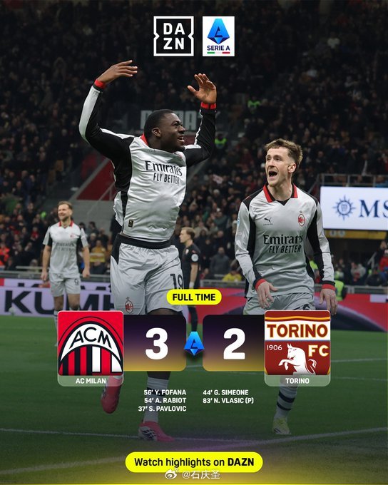 【AC米兰3比2都灵 】实话实说对于这个比赛,我个人赛前信心不太足,上一轮面对拉