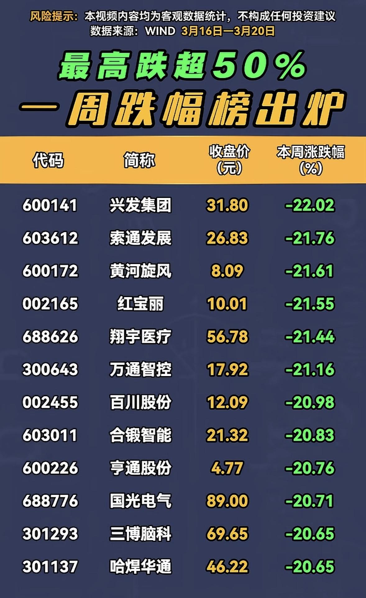 一周跌超50%股票榜出炉,投资需谨慎! 看到一周跌超50%的股票榜出炉,真是让人捏把汗。投资这事儿,有时候就像坐过山车,刺激得很。就说之前有只股票,原本走势还挺稳,谁能想到一周内就暴跌了超50%,多少股民的钱打了水漂。很多人抱着一夜暴富的心态冲进股市,却忽略了背后的风险。有些股民盲目跟风,看到别人买啥自己也跟着买,结果被割了韭菜。所以啊,投资真得谨慎,不能只看眼前的利益,多做做功课,了解市场和公司情况,别让自己的辛苦钱轻易就没了。