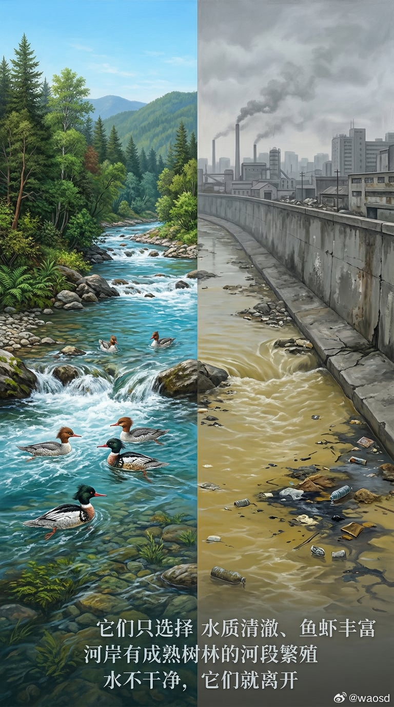 它们只选择:水质清澈、鱼虾丰富、河岸有成熟树林的河段繁殖。水不干净,它们就离开。