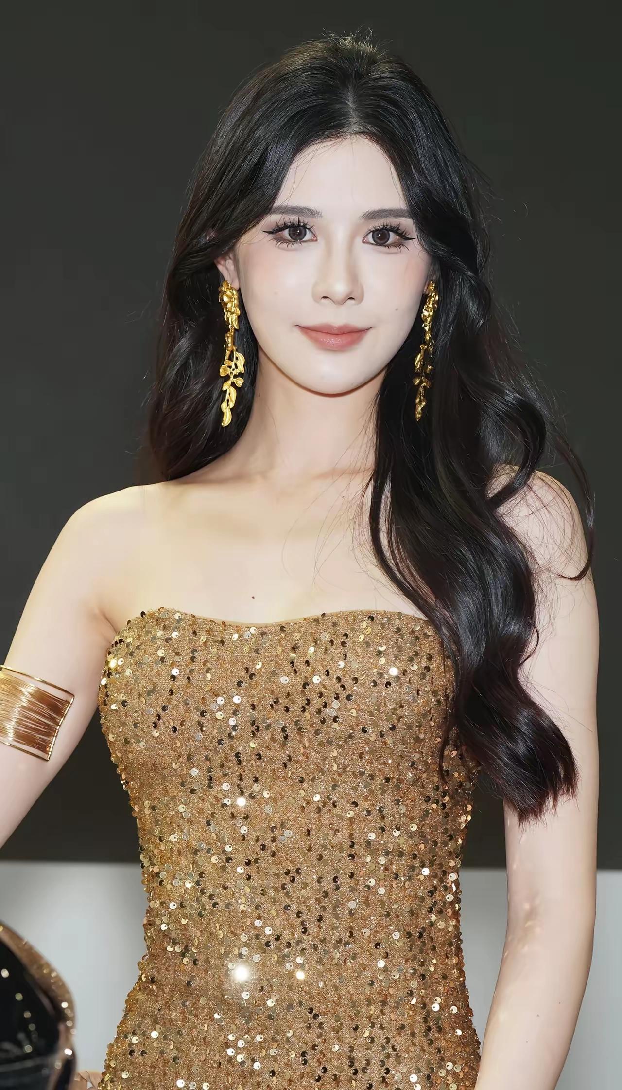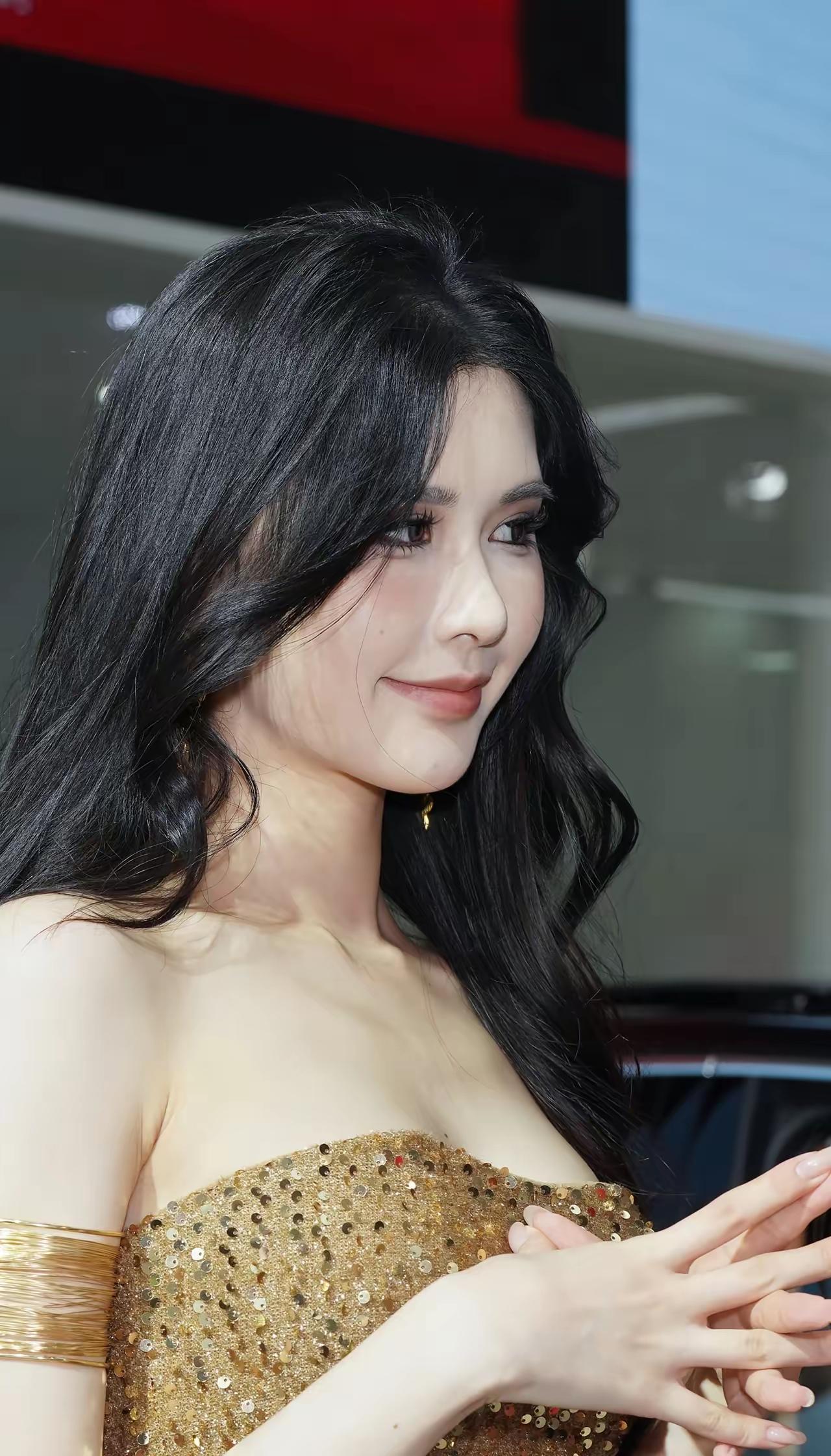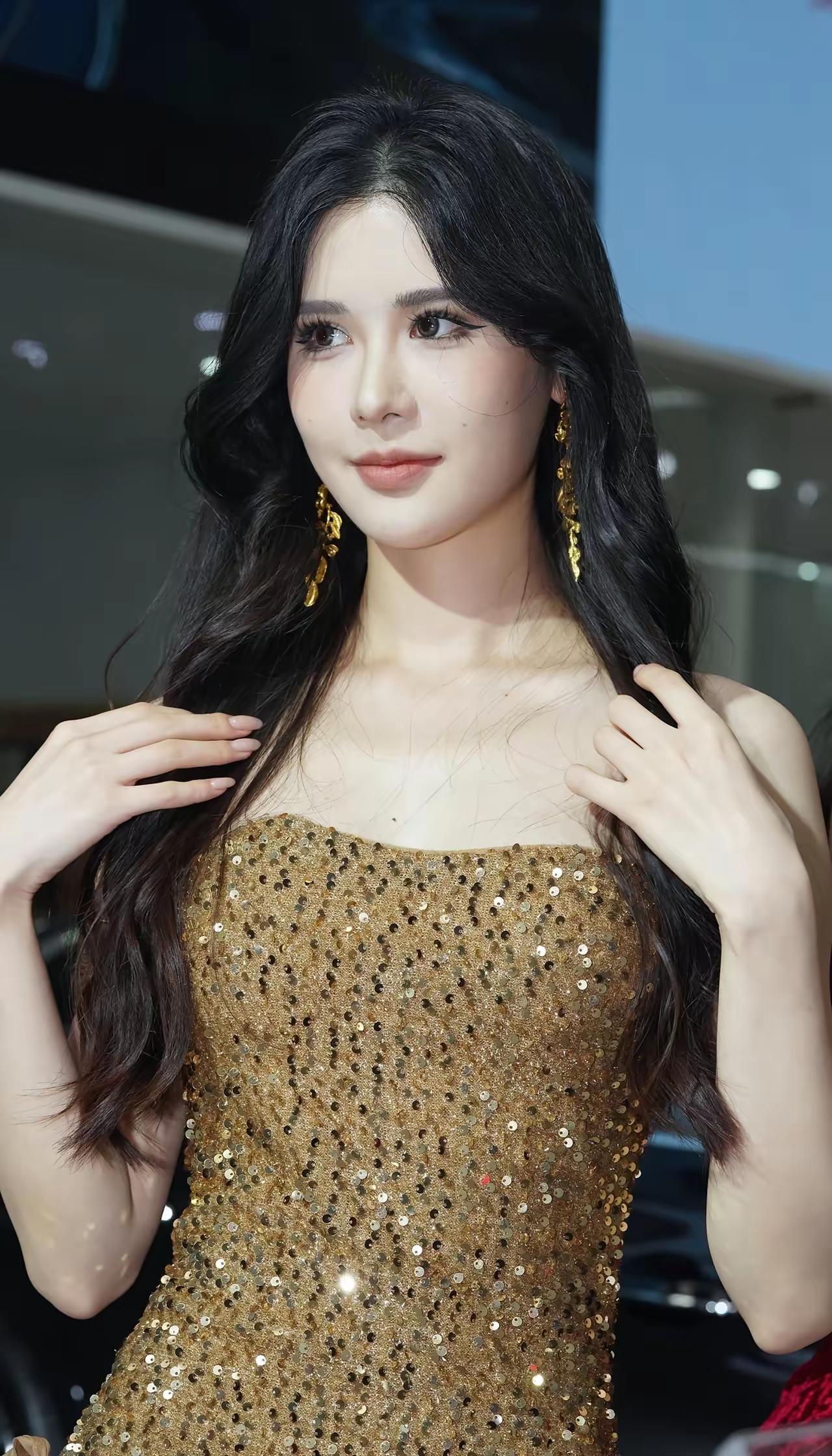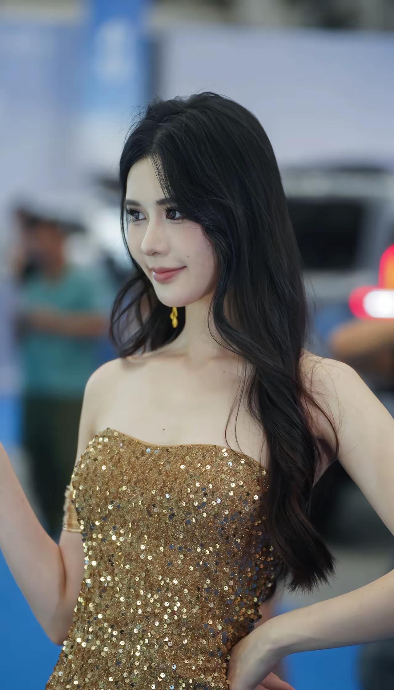175模特敏儿改装车展金色裙装每天美丽照片分享 车展配车模是谁想出来的 汽车女神穿搭