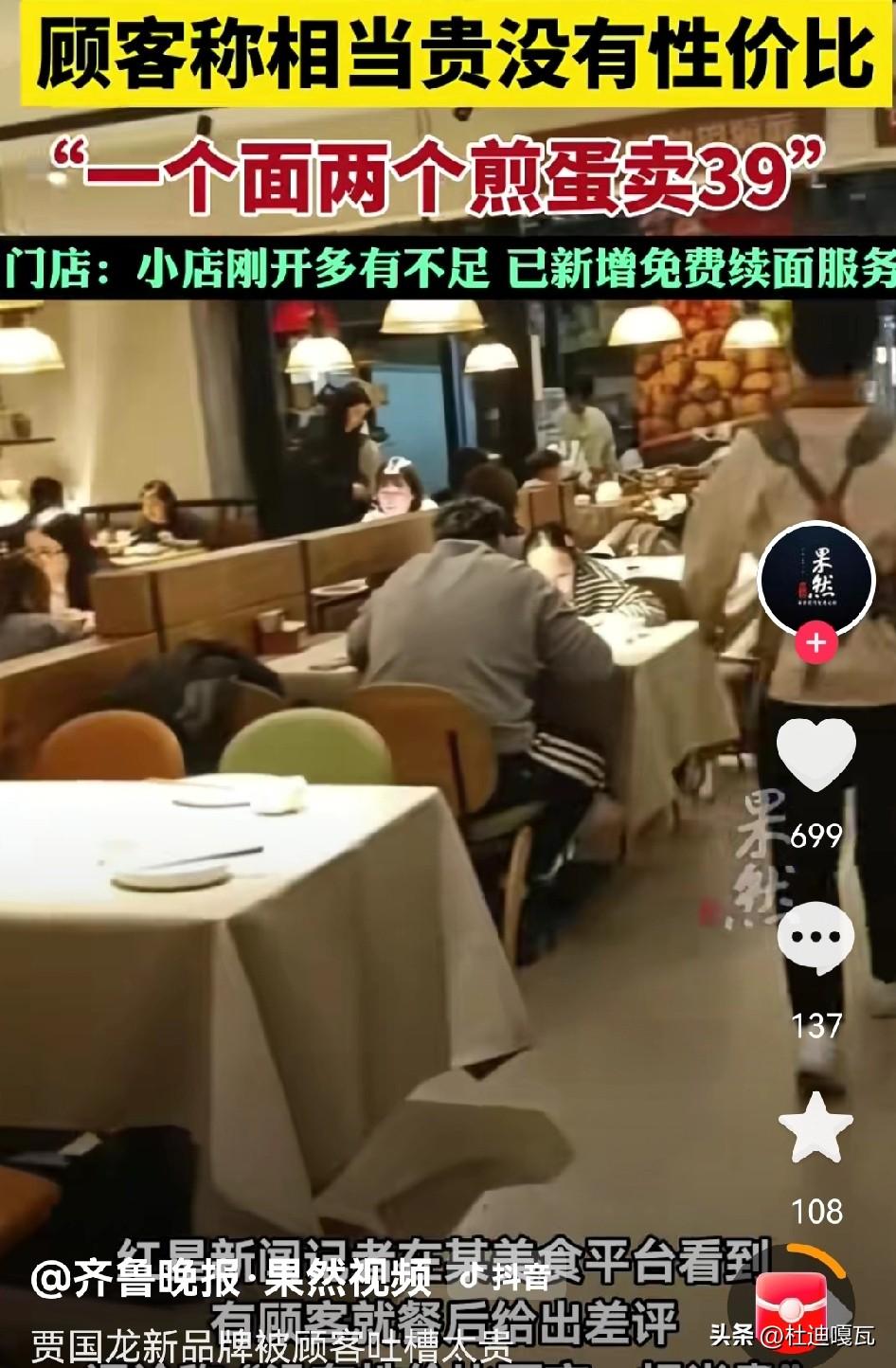 关于贾国龙创立的新品牌,尝鲜的网友说恨不得想抽自己两耳光。 近日,贾国龙为了摆脱西贝的困境,以内蒙焖面为特色创立了“天边砂锅焖”这个新品牌,主打的就是价格亲民,料足味美。 但是有网友率先体验了一下,一碗焖面45元,盛面的锅倒是挺大,但是面的饭量很小,可能适合女孩子分量,一般人也就能吃个半饱。 有其他网友直接甩出了10个字的评价,“每次都上当,当当不一样”,真是生动的诠释了自己的看法。