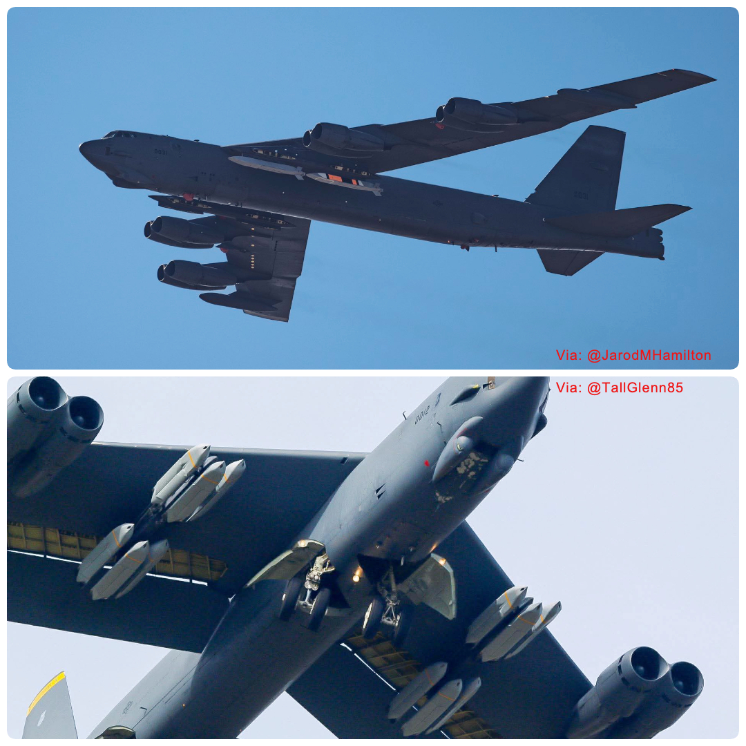 烽火问鼎计划 近期拍摄的高分辨率照片,为 B-52 轰炸机两款最重要的战略及常规武器提供了极佳的直观对比。AGM-181 远程防区外武器(LRSO)和 AGM-158 联合空对地防区外导弹增程型(JASSM-ER)。这两款武器及其后续改进型号,将帮助 B-52 在未来数十年内继续保持作战价值。