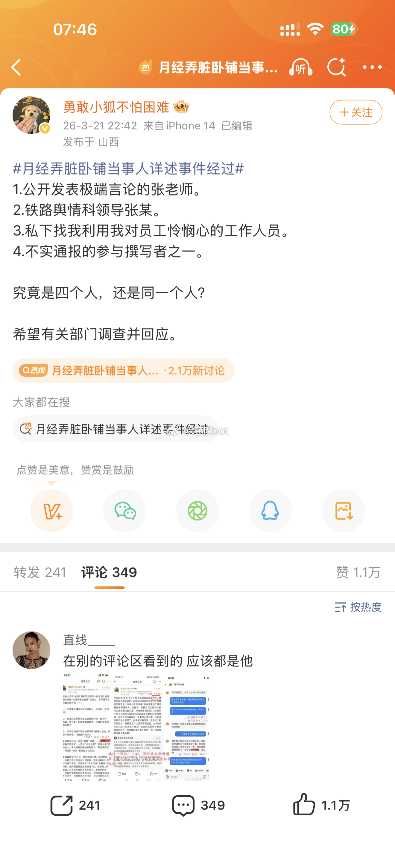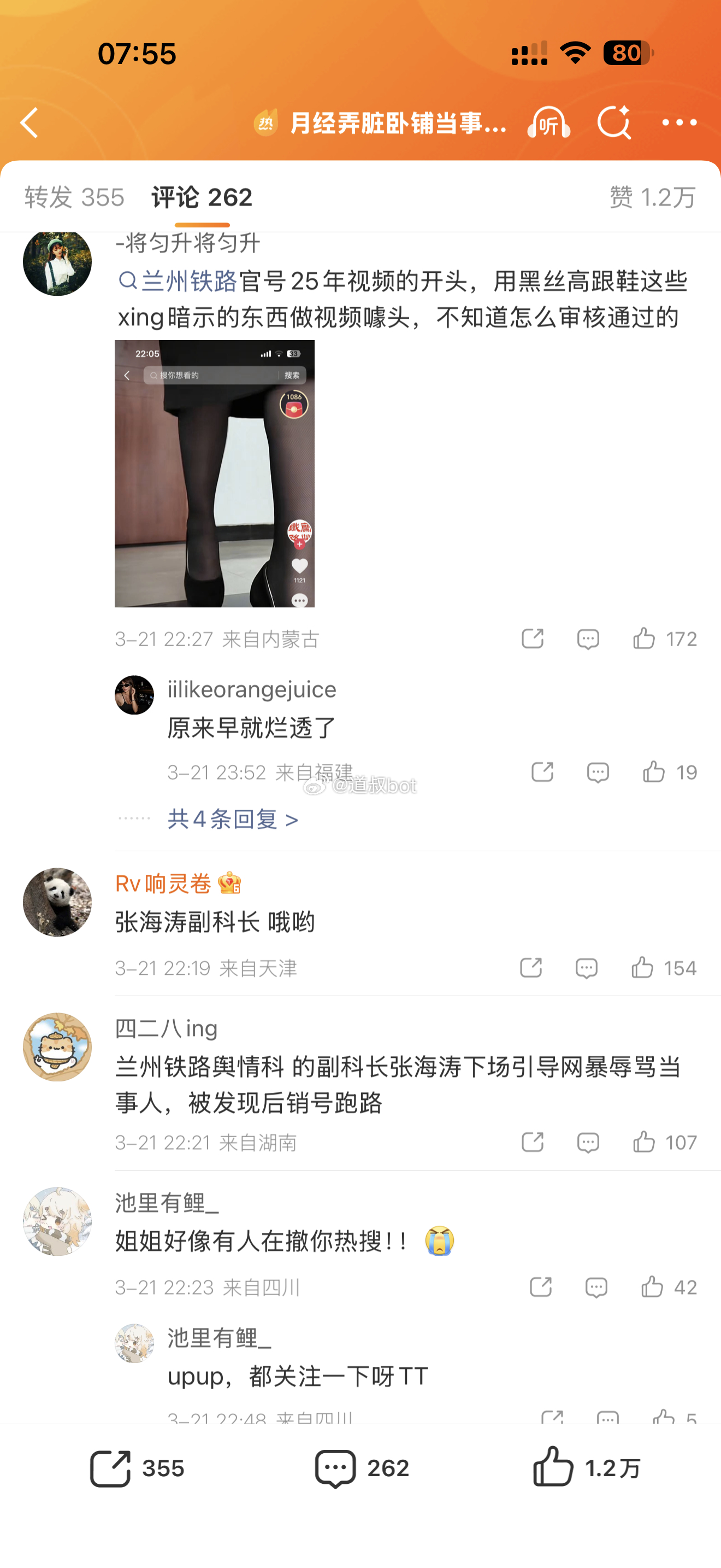 当事人以一人之力挑战官媒和兰州铁路,还有铁路科长,这已经不是简单的月经弄脏床单的