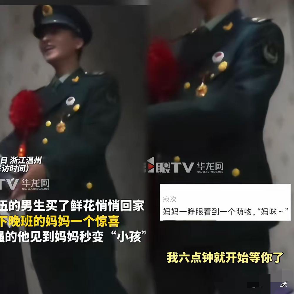 不敢相信!平时威猛的军人还有如此一面。 浙江温州,一位延误退伍的军人,深夜悄悄落地机场,谁都没通知,就想给晚归的妈妈一个最暖的惊喜。 晚上九十点,妈妈终于进门,他立刻捧着鲜花迎上去,满眼欢喜喊“妈咪”,铁血硬汉瞬间变成撒娇小孩。脚一跺、手一摊,软糯地抱怨“我六点就等你了”,反差感直接戳中人心。 在外他是守护一方的军人,扛起责任从不低头;在妈妈面前,他不用硬撑、不用坚强,只管做回被疼爱的孩子。这才是最动人的温柔,最真实的亲情。 不管走多远、长多大,妈妈永远是我们最安心的港湾,是能卸下所有铠甲的地方。 看到这一幕,你是不是也突然想回家抱抱妈妈了?