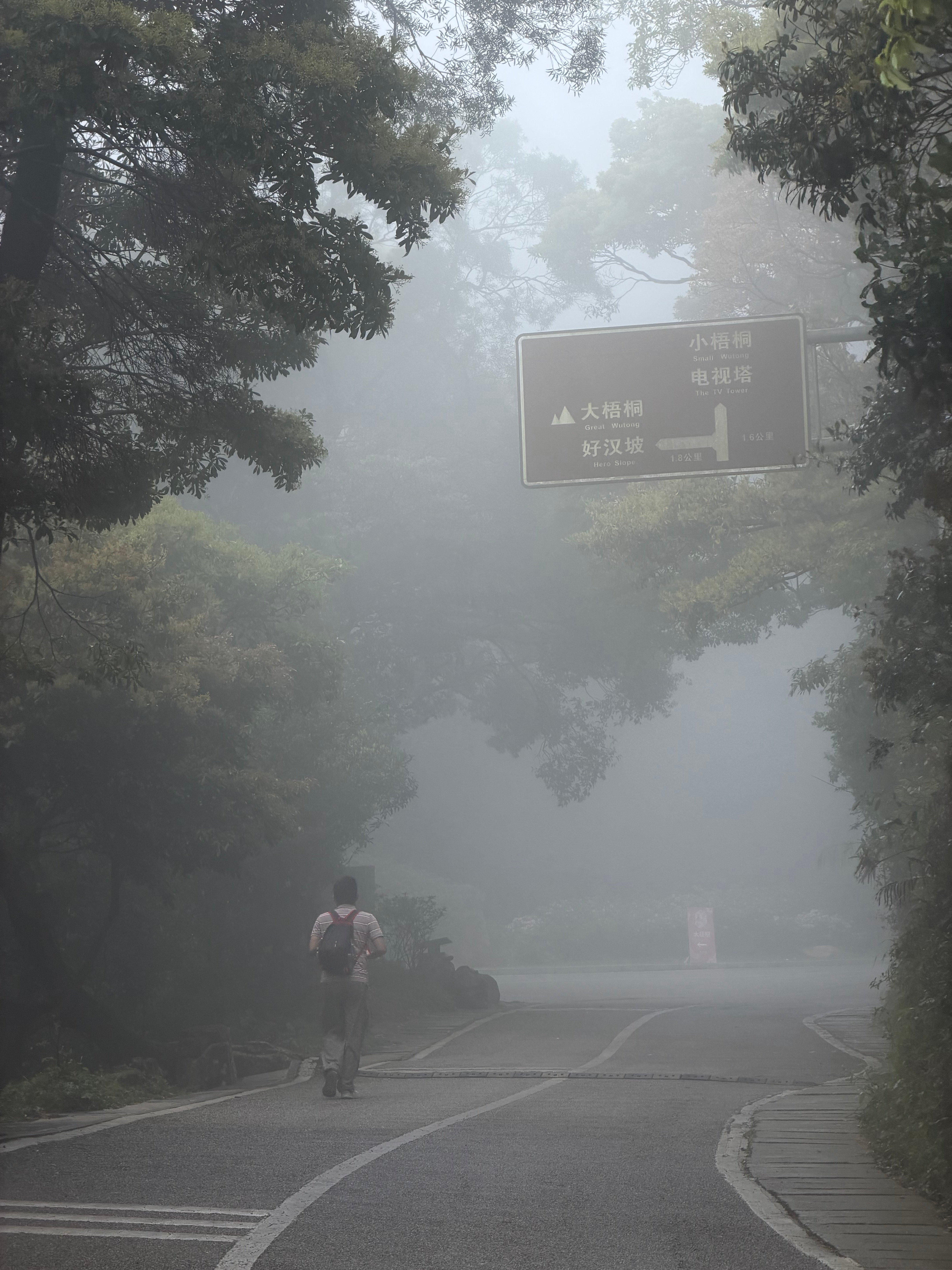 走了接近7km上坡,一直爬,耗时一个半小时,我现在腿力强的可怕,这样5月份冈仁波齐徒步我信心又多了几分(虽然还是没底)!一路上大雾,山下大太阳,山上能见度低于10米!继续整,还有大概1km到顶,但这1km,落差有80层楼那么高,搞吧,腿力强的一匹 深圳·大梧桐山顶鹏城第一峰