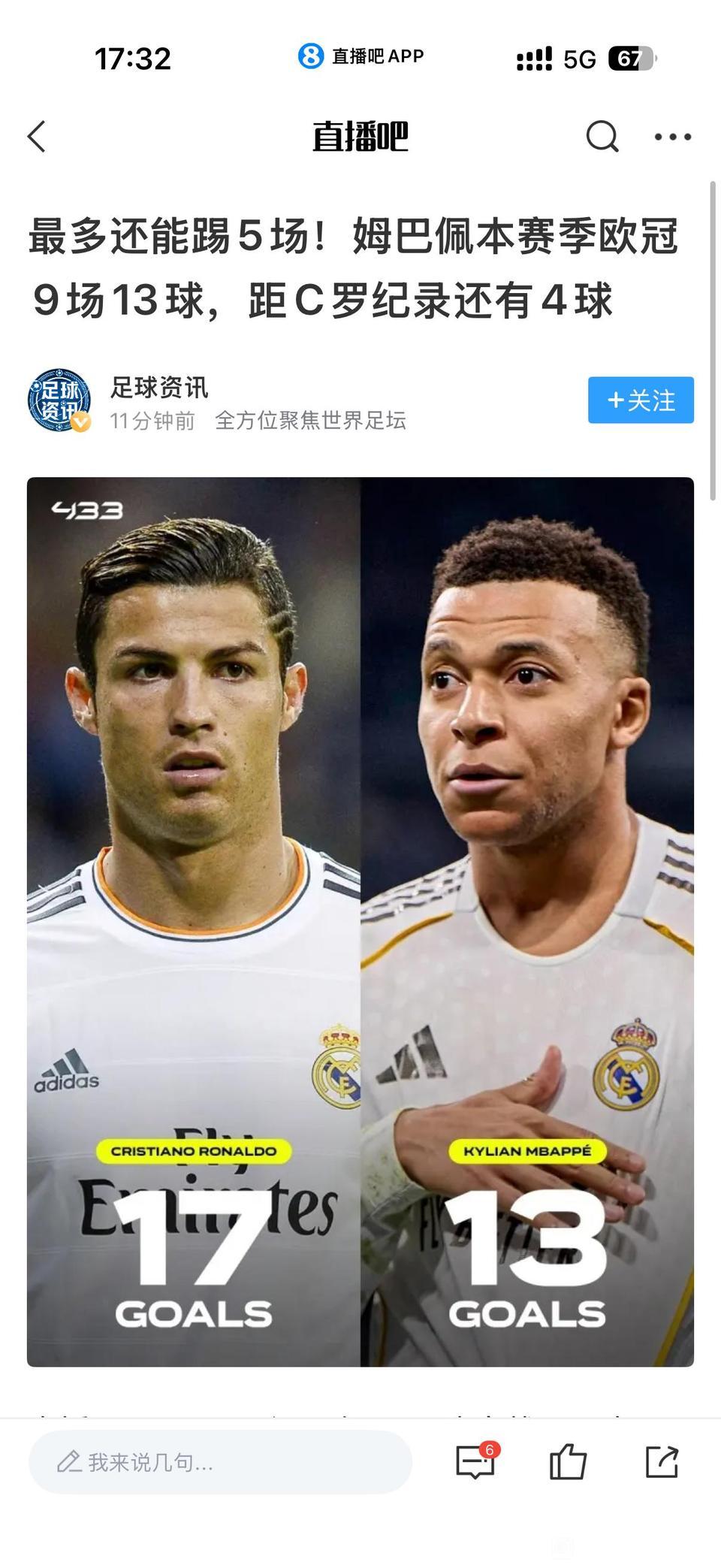 用户10xxx33 6 2026-03-22 22:28 迟早会破的,就是没有姆巴佩破以后也会有别人破,现在都36支队了,欧足联为了赚钱说不定以后40支,44支,48支。。场次越来越多,先不说单赛季的17球,就是总进球的记录也迟早会破,时间问题而已