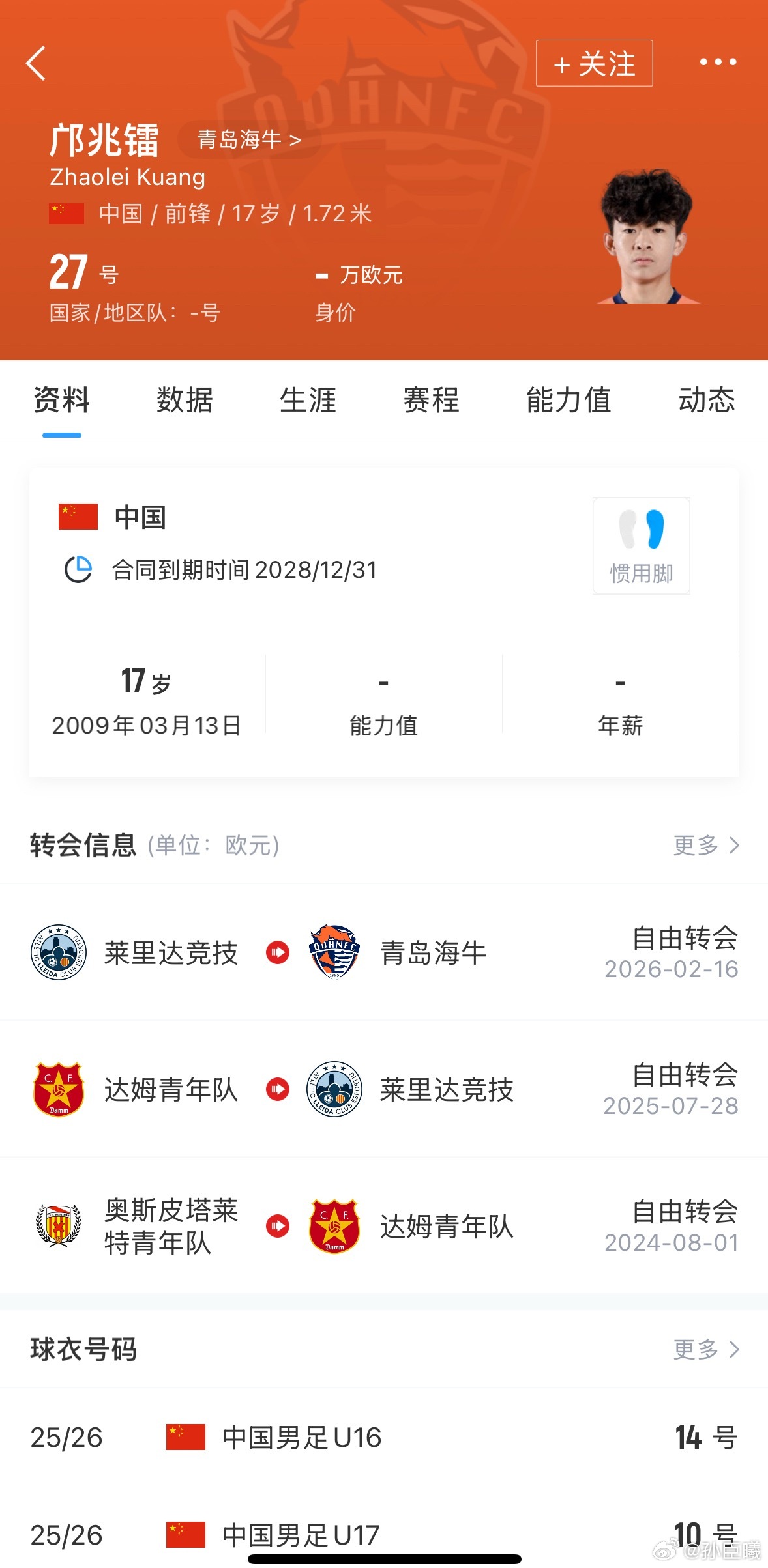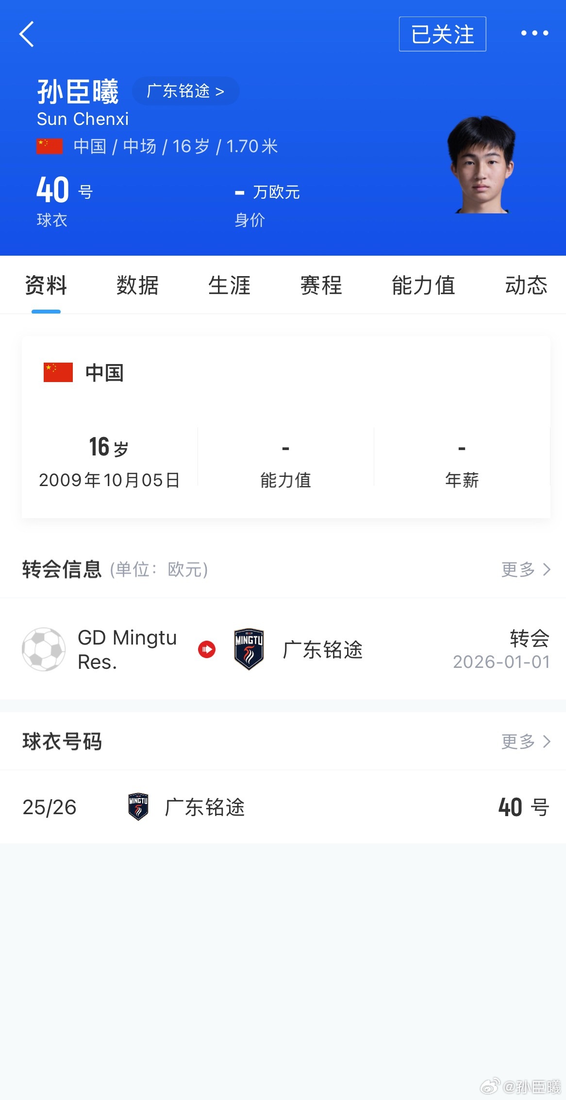 2026年赛季职业足球2009年龄段一共12名球员报名.(目前只有邝兆镭获得出场),其中最小的是2010年黄俊煊(2010年龄第一个报名职业联赛)中超:邝兆镭(青岛海牛)、刘致成(青岛西海岸)中甲:李家润(梅州客家)中乙:喻建峰(长春喜都)、孙臣曦 杨政毅(广东铭途)、赵冠丞 李钧鹏 张旭尧 萧晨熙(山东泰山B队)、黄俊煊(深圳二零二八)、禹谭博(武汉三镇B 队).