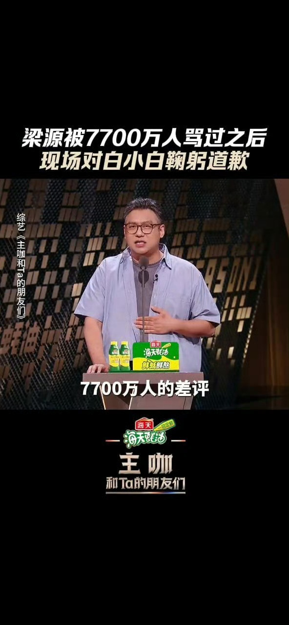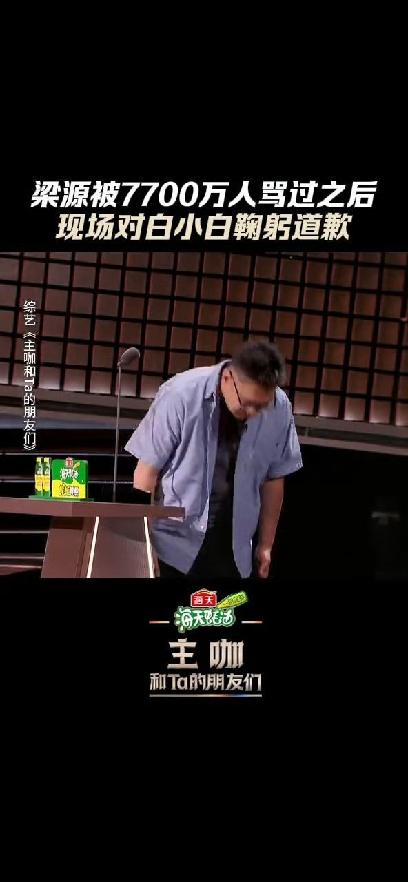 梁源向白小白鞠躬道歉梁源被骂服已老实笑不活了!梁源节目现场向白小白鞠躬道歉,直言曾看不起对方,被7700万差评“教育”后彻底改观,态度大转变。从高高在上到低头认错,全程真实又好笑,网友:这波是真被骂服已老实!