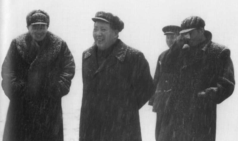 1953年2月15日,毛泽东在赴武汉途中,专列经停郑州火车站时,因遇大雪临时下车散步的珍贵瞬间,由他的专职摄影师吕厚民拍摄。 毛泽东身着厚重的深色大衣,头戴棉帽,雪花已落满肩头,却神情舒展,面带微笑,脚步从容地走在雪地里,全无寒意,尽显对自然与民生的亲近;身旁有公安部部长罗瑞卿、机要秘书叶子龙等人陪同,同样裹着冬装,在漫天飞雪中与领袖并肩而行,形成一幅风雪同舟的画面; 1953年2月13日(大年三十),毛泽东吃过团圆饭后决定:“明天我们出去走走,看过黄河了,这一次再去看长江。” 15日凌晨(大年初二),他登上专列离开北京,这是新中国成立后他第一次赴武汉视察,核心任务是调研长江治理、农业生产与城市建设,为即将全面展开的社会主义建设做准备。 专列途经郑州时,天降大雪,银装素裹。毛泽东见此情景,临时决定下车散步,他说:“瑞雪兆丰年,这场雪下得好,能冻死害虫,明年庄稼肯定能丰收。” 于是便有了这踏雪问丰年的经典画面。
