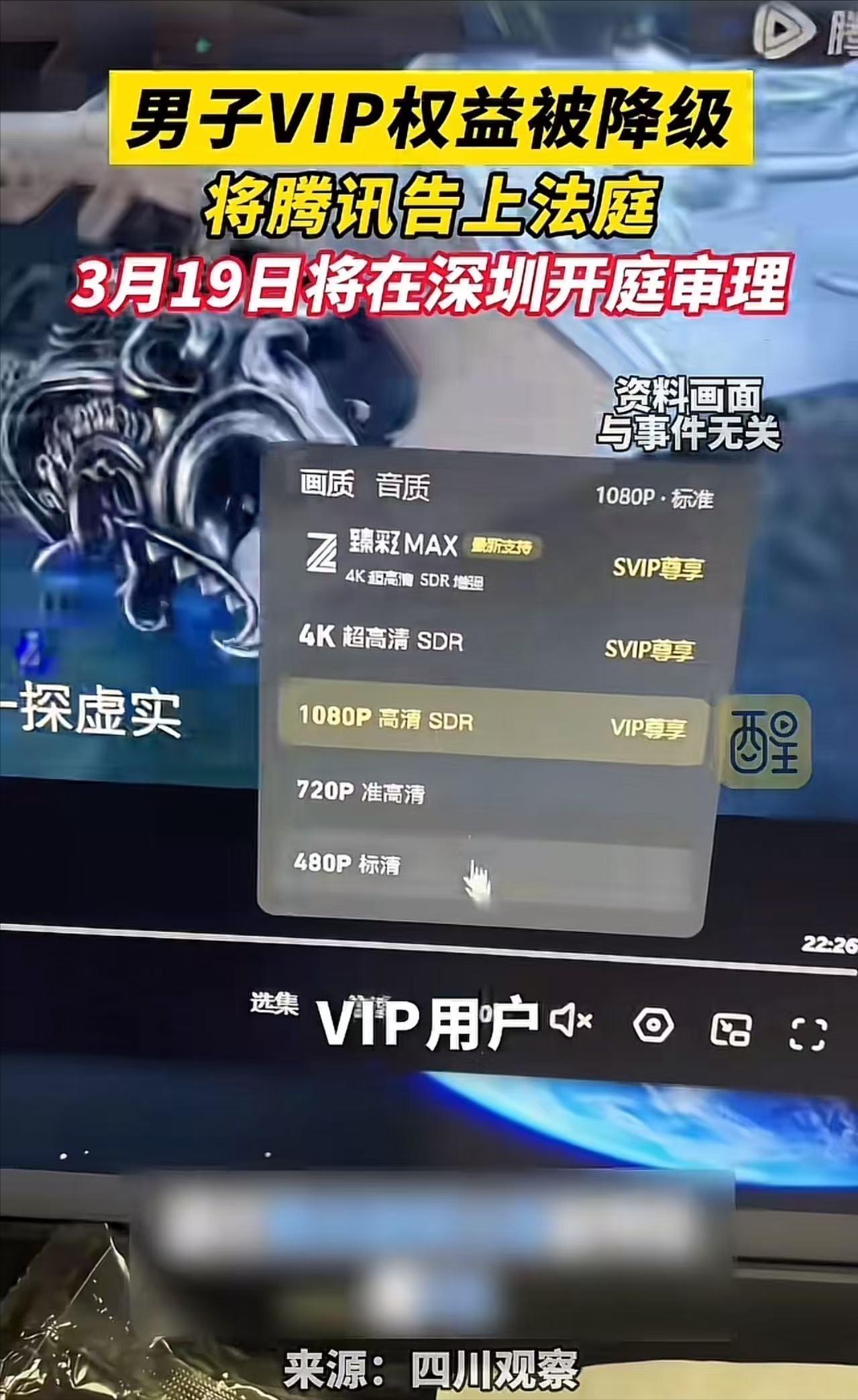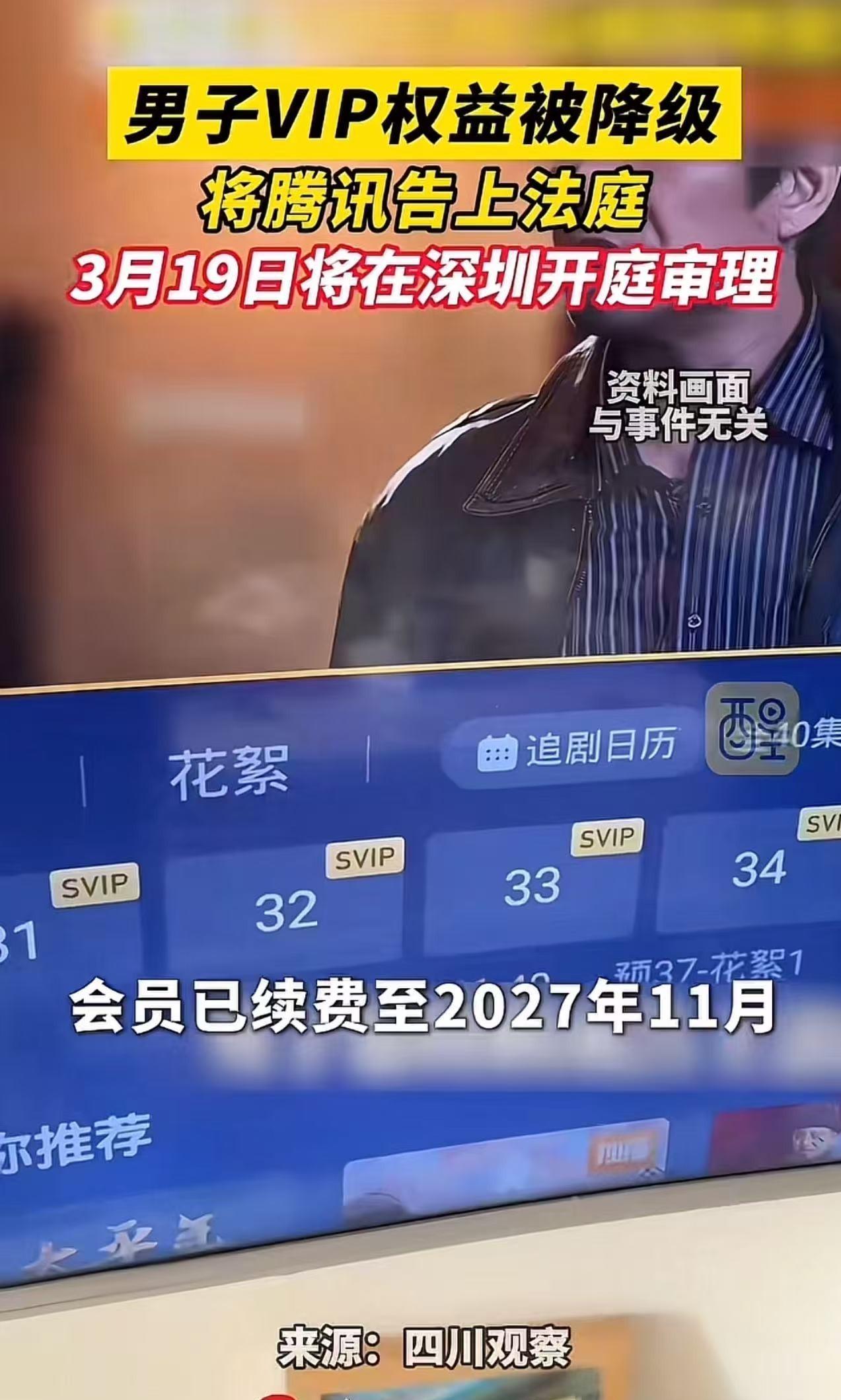 “终于有人硬刚了!”男子一口气买了几年的影视VIP会员,没想到平台新增SVIP服务,导致他的权益被降级!男子:“本来VIP就能享受4K画质,现在SVIP才能享用,凭什么让我多掏钱!”男子怒将影视平台告上法庭!网友:这一仗,必须赢! 2026年3月,深圳南山法院门口,朱先生拿着传票站了一会儿,对他来说,这不是“去法院打卡”,而是一次很实际的维权:他要告的对象是影视平台。 围观的人会觉得稀奇,是因为普通用户起诉大型互联网平台并不常见,但对当事人而言,起因其实很简单——他觉得自己买到的权益,被平台中途改了。 事情要从前两年说起,当时影视平台做会员促销,朱先生索性一次性把会员续到2027年11月。 选择长期充值的人,通常有两种心理:一是图便宜,长期套餐单月摊下来更划算;二是图省心,不想每个月去续费,也不想哪天追剧追到一半,发现会员到期。 更重要的是,充值页面和相关说明里,列出的核心权益,会让消费者形成明确预期,比如4K画质、剧集抢先看等。 朱先生的理解很朴素:我一次性把几年钱付清了,你就应该在这段期限里,按当时承诺的标准提供服务。 转折出现在平台推出“SVIP”之后,很多用户的感受是:原来VIP能用的东西,开始被分层、被拆分,4K、提前看等权益,被挪到了更高一级的付费档里。 对消费者来说,最直观的变化就是——自己明明还在会员期内,但某些功能突然不可用了,页面提示要升级、要加钱。 你不加钱,也不是完全不能看,只是体验被降级:画质不再是原先承诺的那档,部分剧集的观看进度也要被“卡一下”。 朱先生先走的是常规路线:找客服,结果客服的答复基本是模板化的,常见表述无非是“规则调整”,“产品升级”,“以页面显示为准”“请您理解”。 这类回应的问题不在于态度,而在于它没有回答核心矛盾:你可以推出新产品、做新档位,但能不能把老用户已经付费买下来的权益直接拿走? 尤其是像朱先生这种,一次性预付到2027年的用户,他并不是“这个月没续费”,而是已经提前把未来几年的费用交了。 投诉渠道他也尝试过,但如果平台仍坚持“规则更新”的说法,消费者往往会发现:在电话里吵不出结果,最后还是回到“愿不愿意继续加钱”的选择题。 朱先生不愿意接受这种选择题,于是干脆把争议拉回最硬的一套规则里——合同和法律,直接起诉。 他提交的诉求并不复杂:会员期没到,平台就应当继续提供当初购买时包含的权益,不能以推出新档位为由单方削减服务内容,说白了,他要的不是“给我一个优惠券”,而是要求平台把承诺兑现完。 这件事在网上引发共鸣,原因也不难理解,很多人不是计较“4K值多少钱”,而是对一种熟悉的商业套路反感。 平台先用一个标准吸引你付费,等用户规模上来之后再分层加价,把原本包含在内的东西,变成“更高级版本”,让你为了维持原体验不得不继续付。 用户会觉得自己被迫“二次付费”,而且是在不情愿、没选择的情况下被推着走。 从法律角度看,争议的关键,通常会落在两点上,朱先生在购买会员时,平台对权益的展示、说明和承诺到底是什么,能不能形成合同内容的一部分。 页面宣传、会员协议、支付前后的权益列表、当时的规则截图等,都可能成为证据,只要能证明他购买时包含某些权益,且在合同期内被削减,就可能构成违约,或对消费者权益的不当侵害。 平台能不能用“格式条款”,或“规则变更”来对抗消费者的合同期待,互联网平台喜欢写“最终解释权”“规则可能调整”等条款,但在我国法律体系下,这类表述并不是万能护身符。 按照《民法典》有关格式条款、公平原则、诚信原则的要求,以及消费者权益保护相关规定,经营者不能通过单方条款,随意减轻自身责任、加重消费者负担,更不能用含糊条款,把核心义务变成“我想给就给、不想给就不给”。 尤其当消费者已经一次性预付多年费用时,平台中途变更规则的合理性、必要性、告知方式,以及是否提供等价替代方案,都会成为法院审查的重点。 这案子之所以更有看头,还在于它触碰了平台商业模式的一个敏感点:预付费。 平台愿意推长周期会员,本质上是把未来现金流提前拿到手;用户愿意一次性付几年,靠的是“你不会中途翻脸”的信任。 如果平台可以随时调整,把老权益降级为新档位的“入门版”,那用户就会越来越不敢买长周期套餐,只敢按月付、随时退。 短期看平台可能多赚一笔升级费,长期看是把预付费的信用基础掏空。